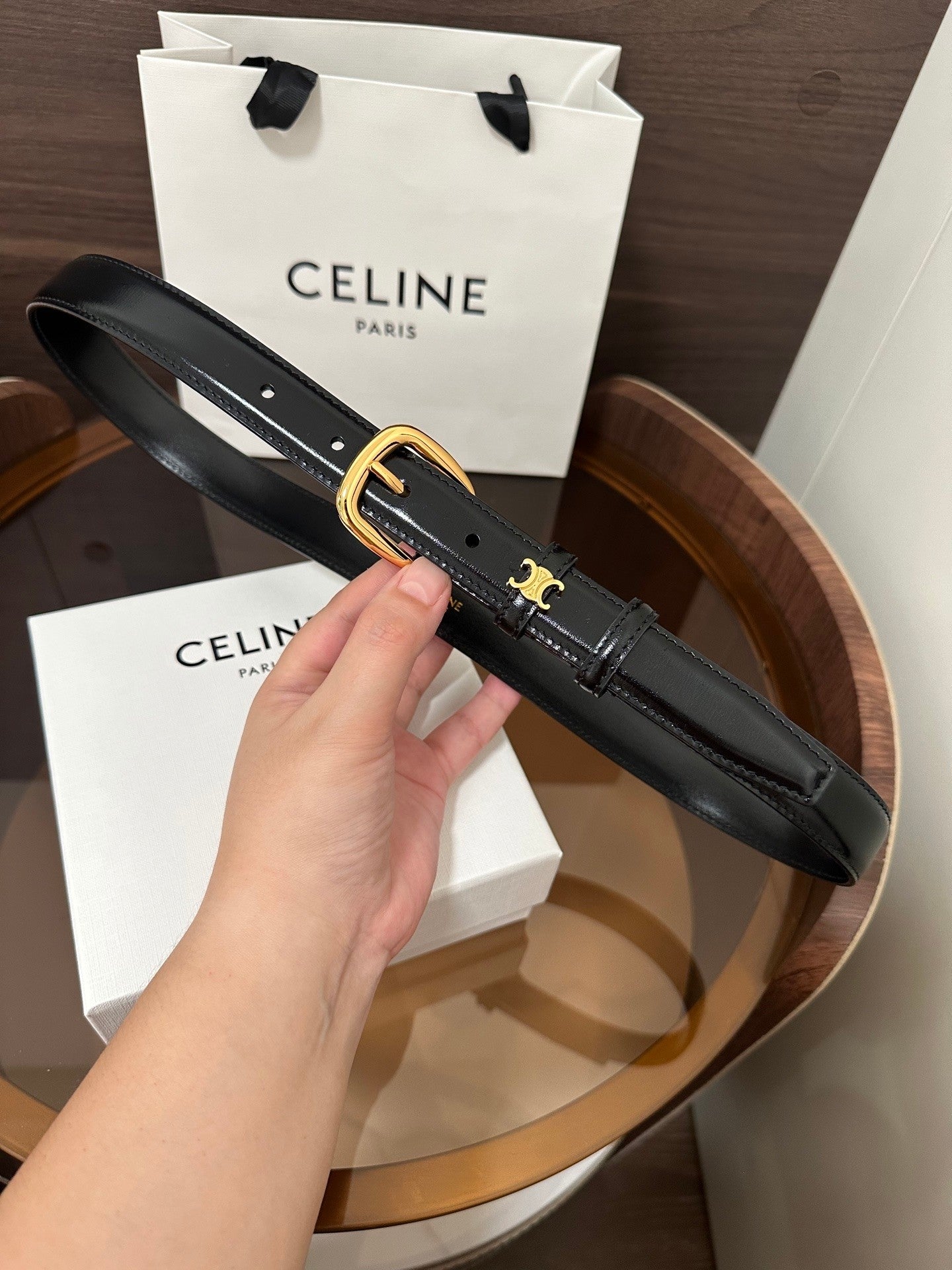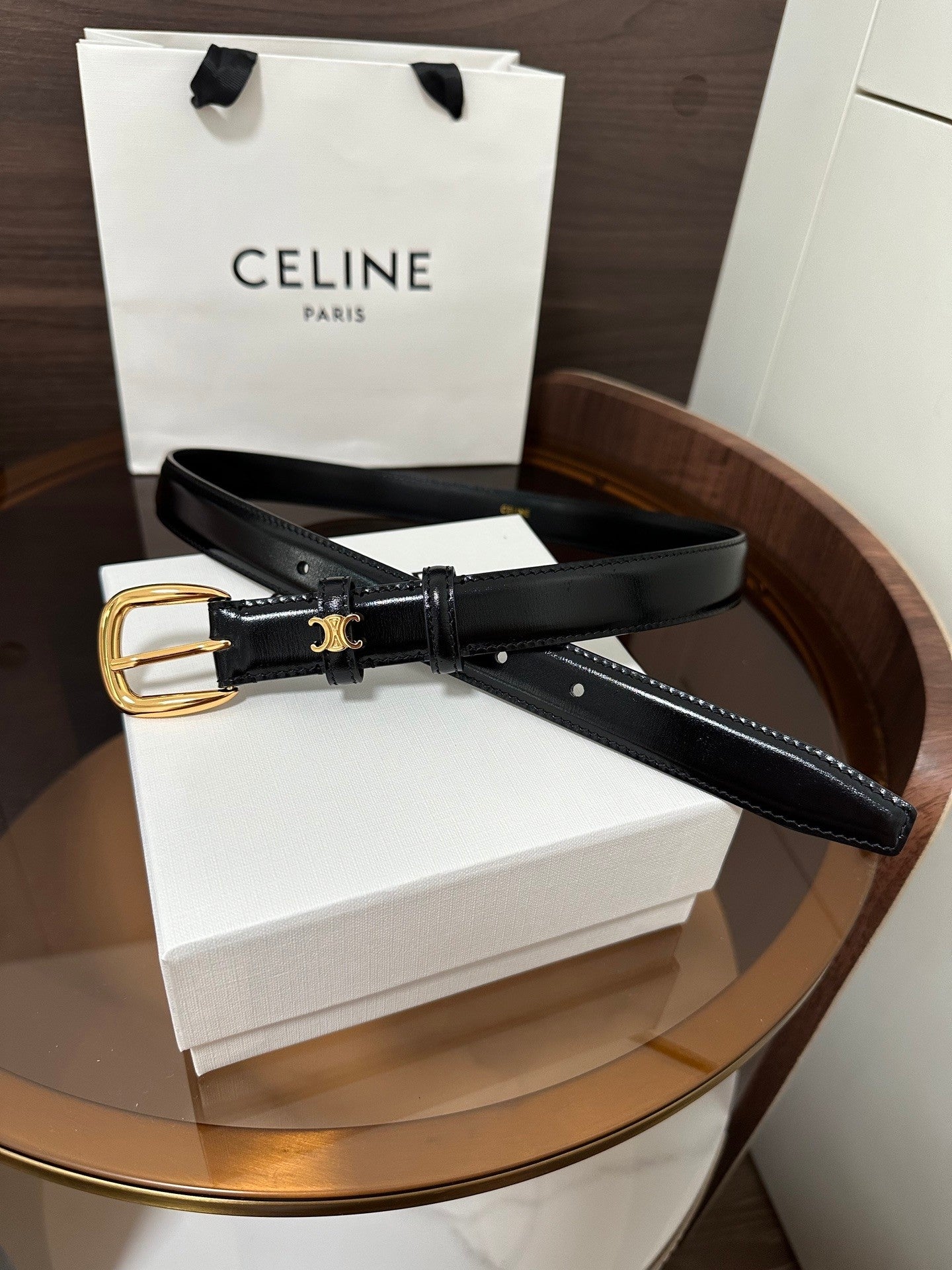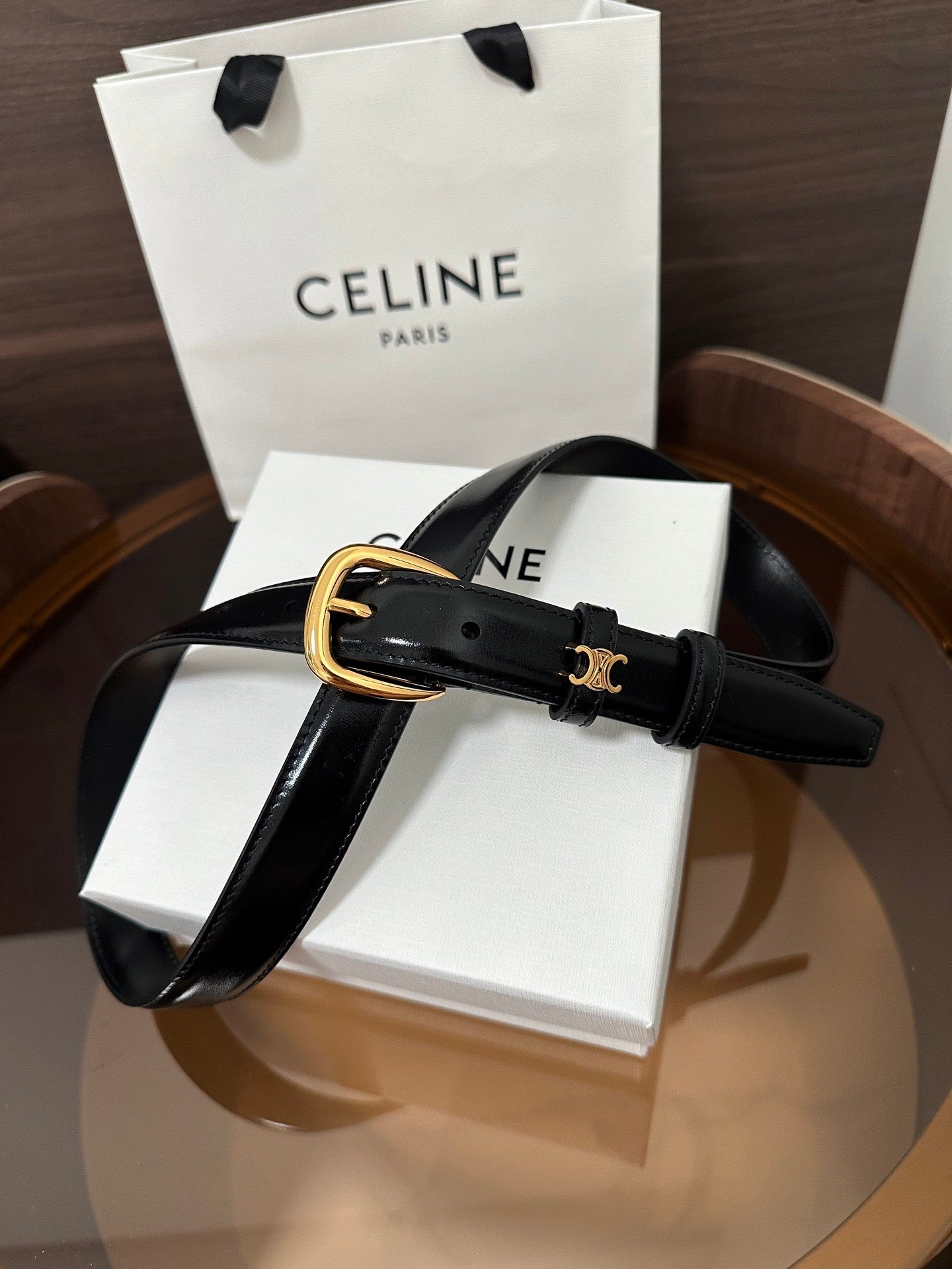 ❣️CÉLINE CELINE 🆕 VIVIENNE Medium TAURILLON 25mm Belt, Calfskin, Calfskin Lining, Gold-Tone Hardware, Round Buckle. The first circular ring is surrounded by a TRIOMPHE metal ring. Width: 1 inch (2.5 cm)