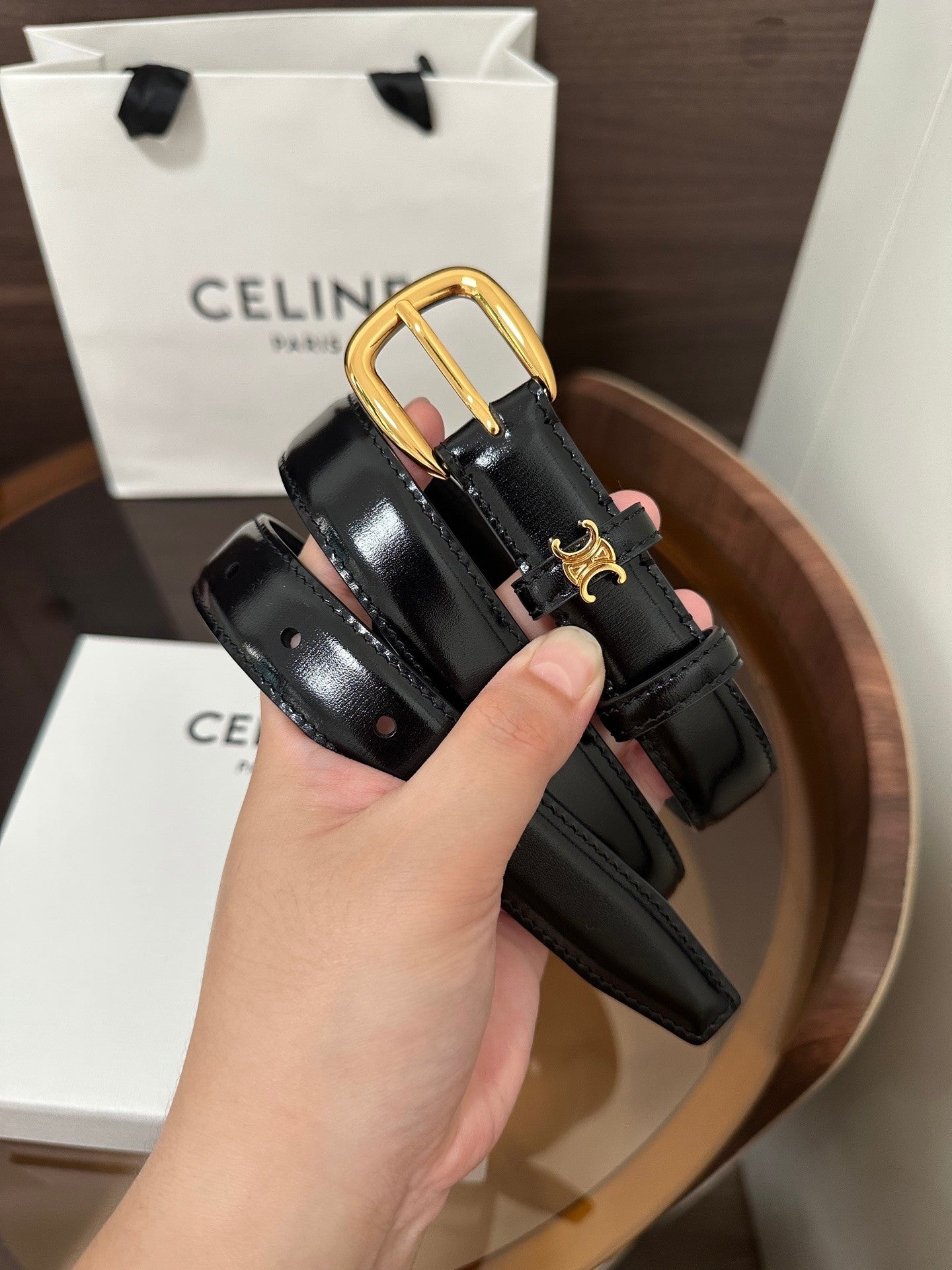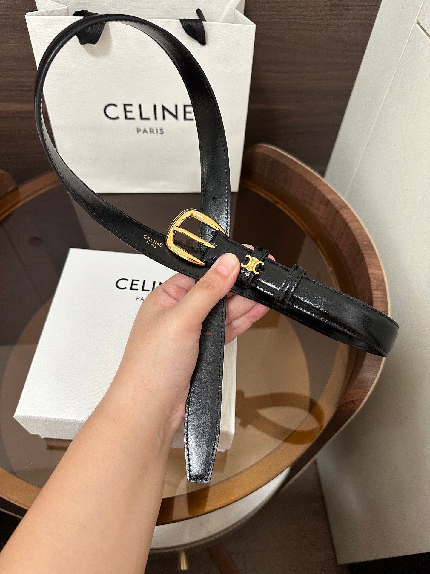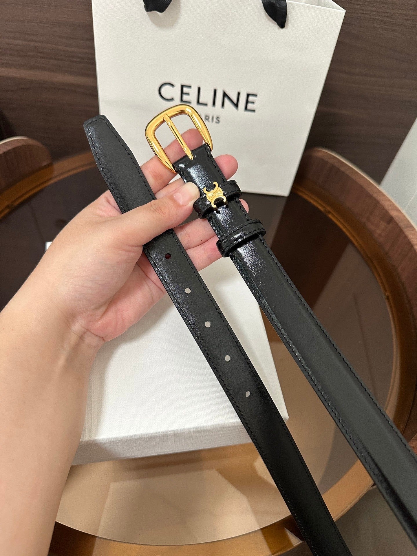 ❣️CÉLINE CELINE 🆕 VIVIENNE Medium TAURILLON 25mm Belt, Calfskin, Calfskin Lining, Gold-Tone Hardware, Round Buckle. The first circular ring is surrounded by a TRIOMPHE metal ring. Width: 1 inch (2.5 cm)