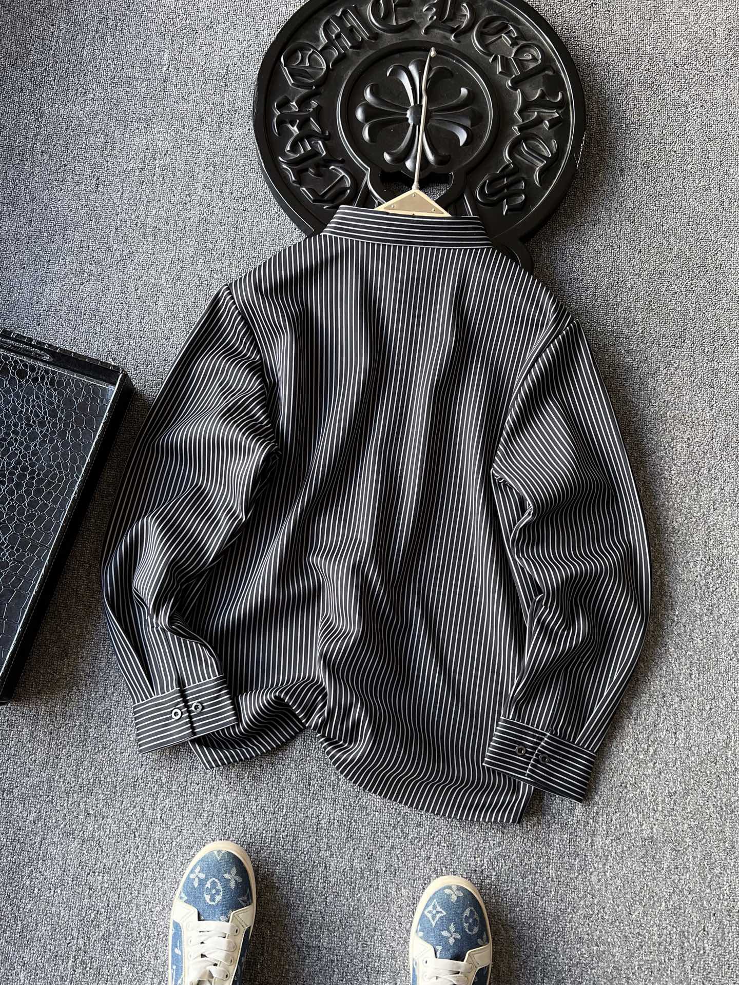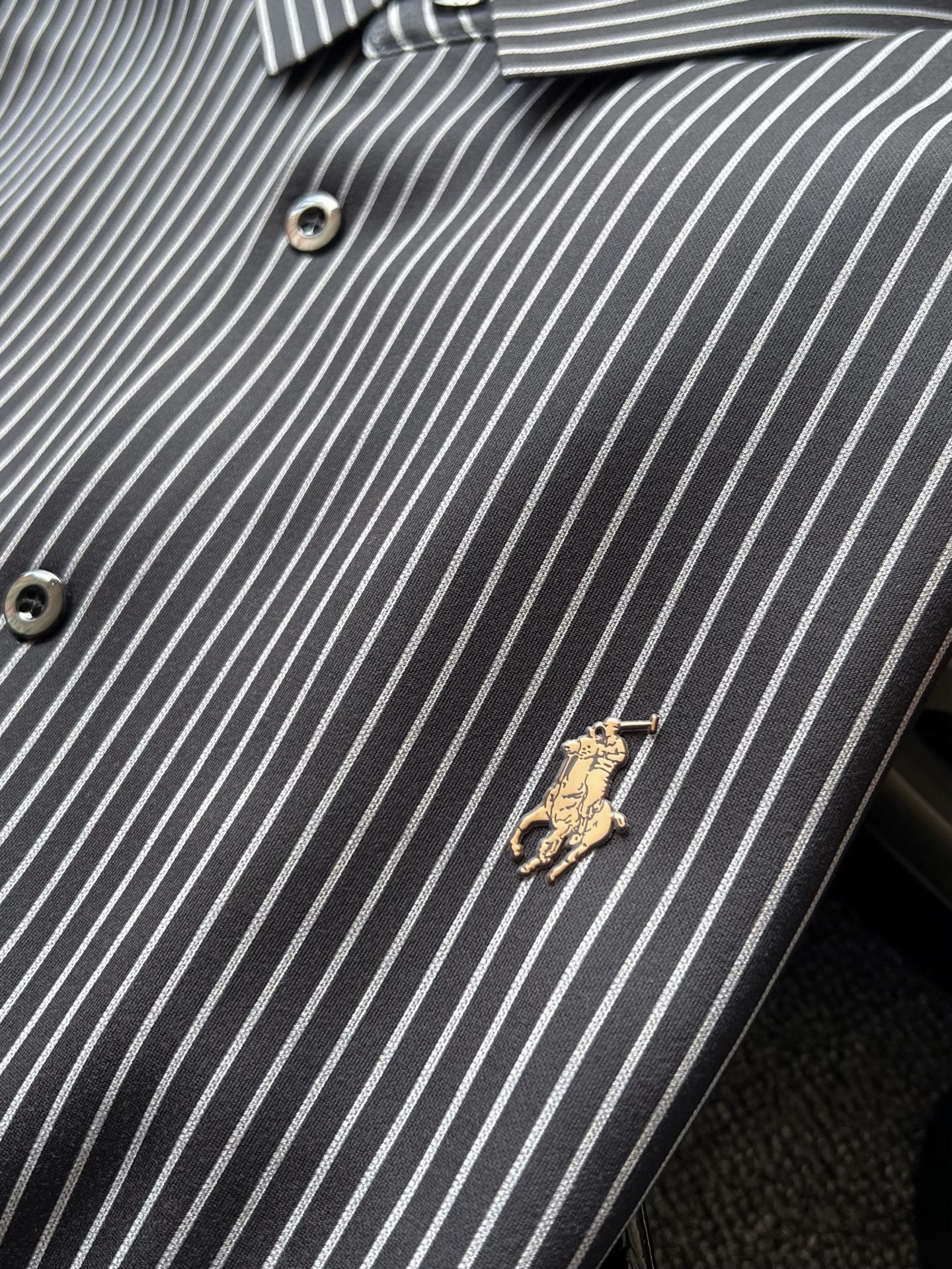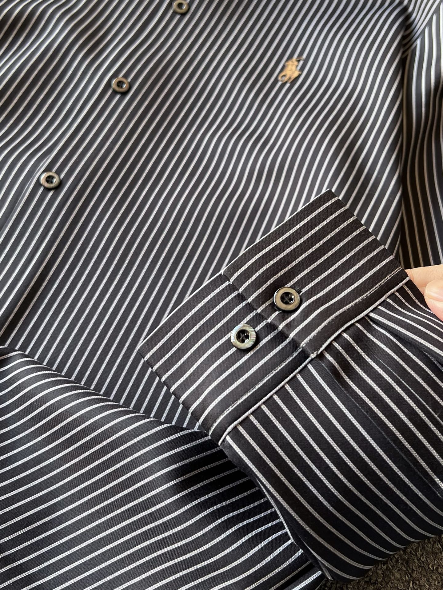 Details upon details! Ralph Lauren's new striped long-sleeved fleece shirt! Positioned as a sophisticated urban business casual collection! The 3D Ralph Lauren Polo brown logo on the chest features hand-painted lines for a refined look! The lining is meticulously crafted, with bartack reinforcement at the seams for a truly remarkable detail!