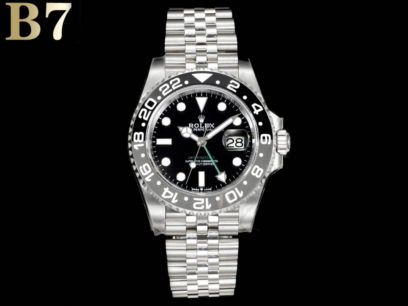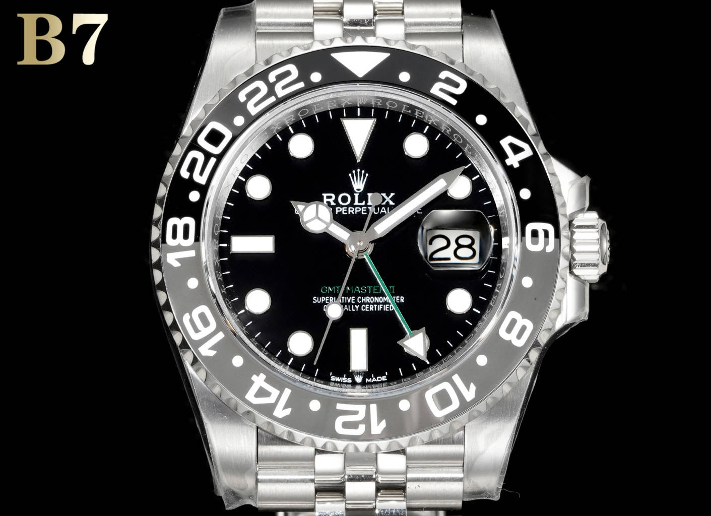 Rolex GMT Greenwich upgraded version. Made with consistent 904L steel, integrated ceramic platinum numeral bezel matching the original. Brand new 3285 integrated movement. The GMT hand can be adjusted forwards and backwards along with the calendar. Accessories are compatible with the original. 904L steel case and bracelet, sapphire crystal, super luminous, bidirectional ceramic rotating bezel, folding clasp.