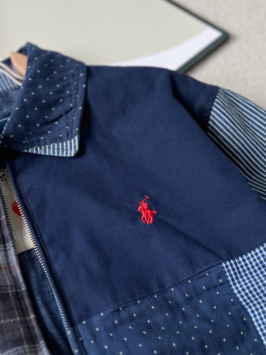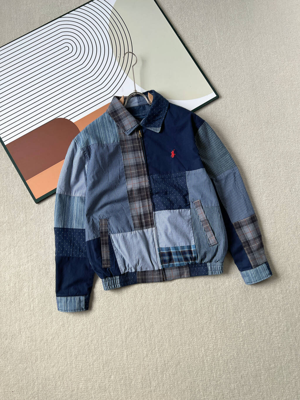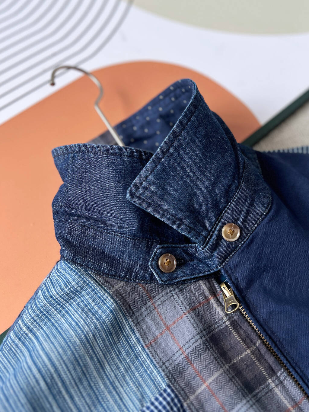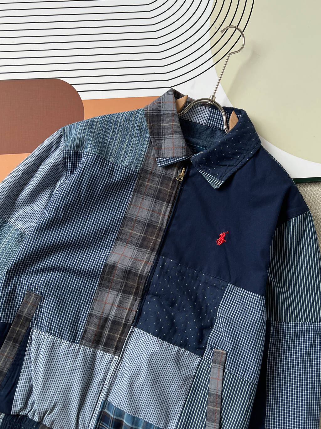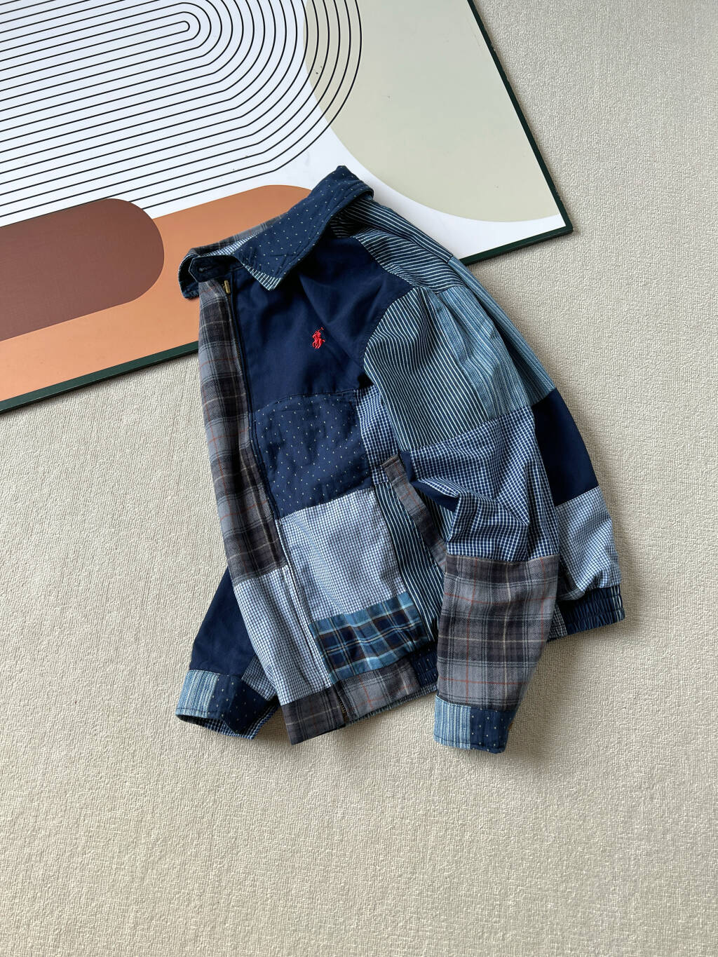 Taking 90 days to disassemble and create the pattern, the jacket comprises over 100 different fabric panels, meticulously hand-assembled like a puzzle, showcasing 12 different fabrics in one garment.