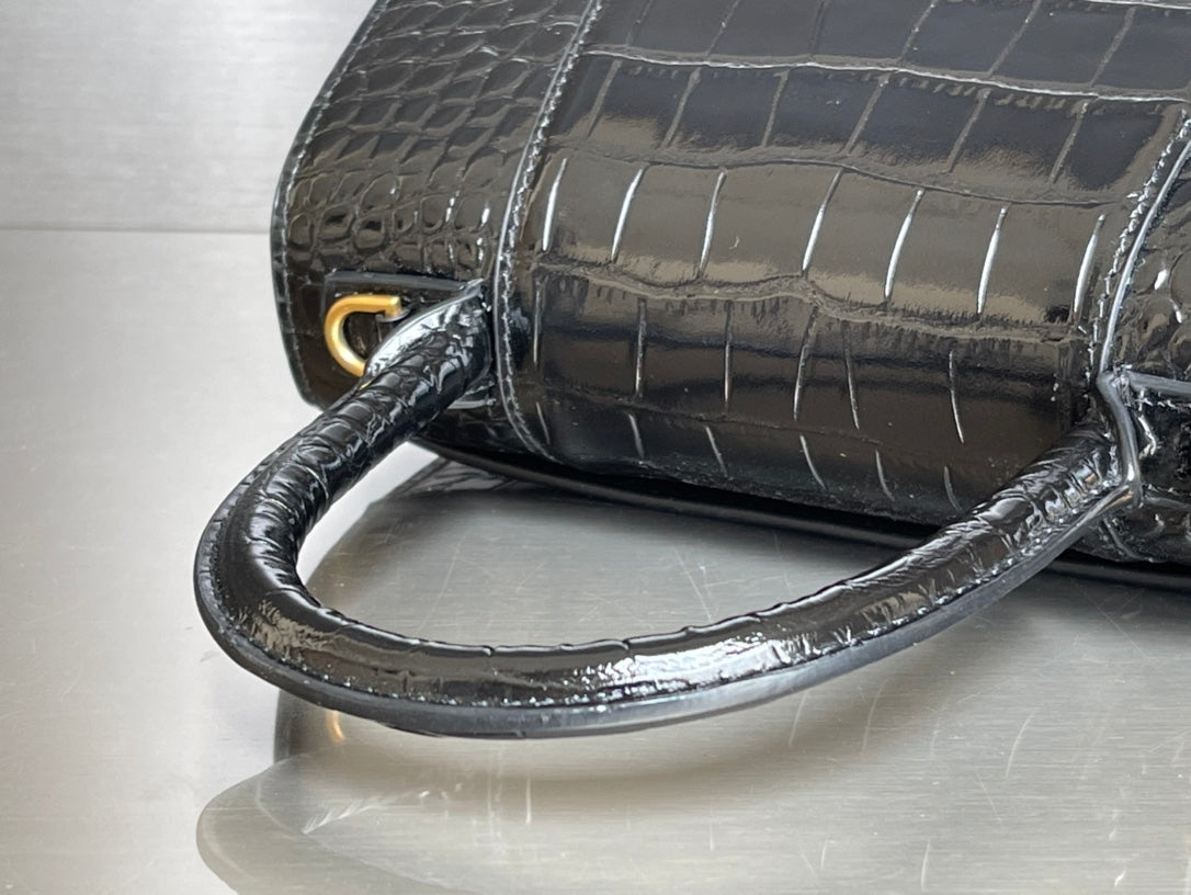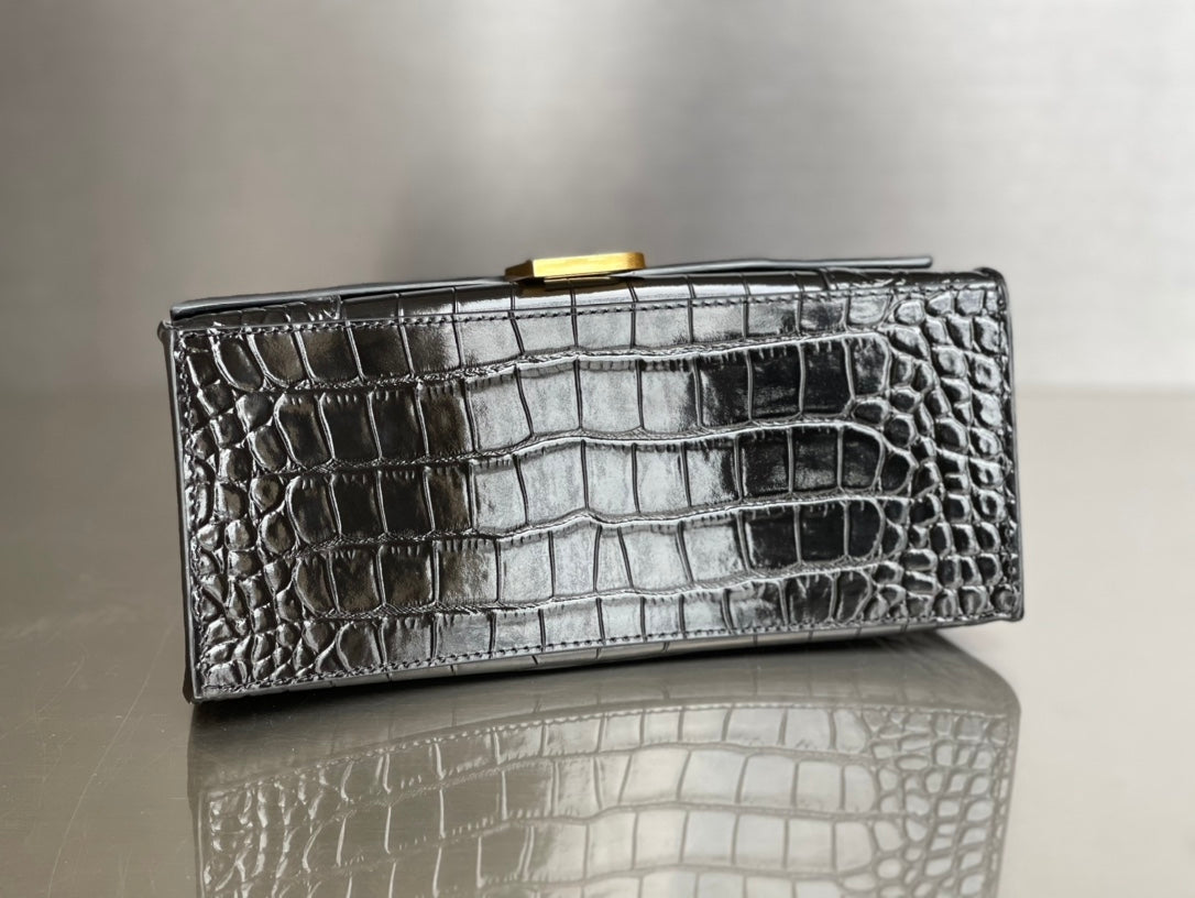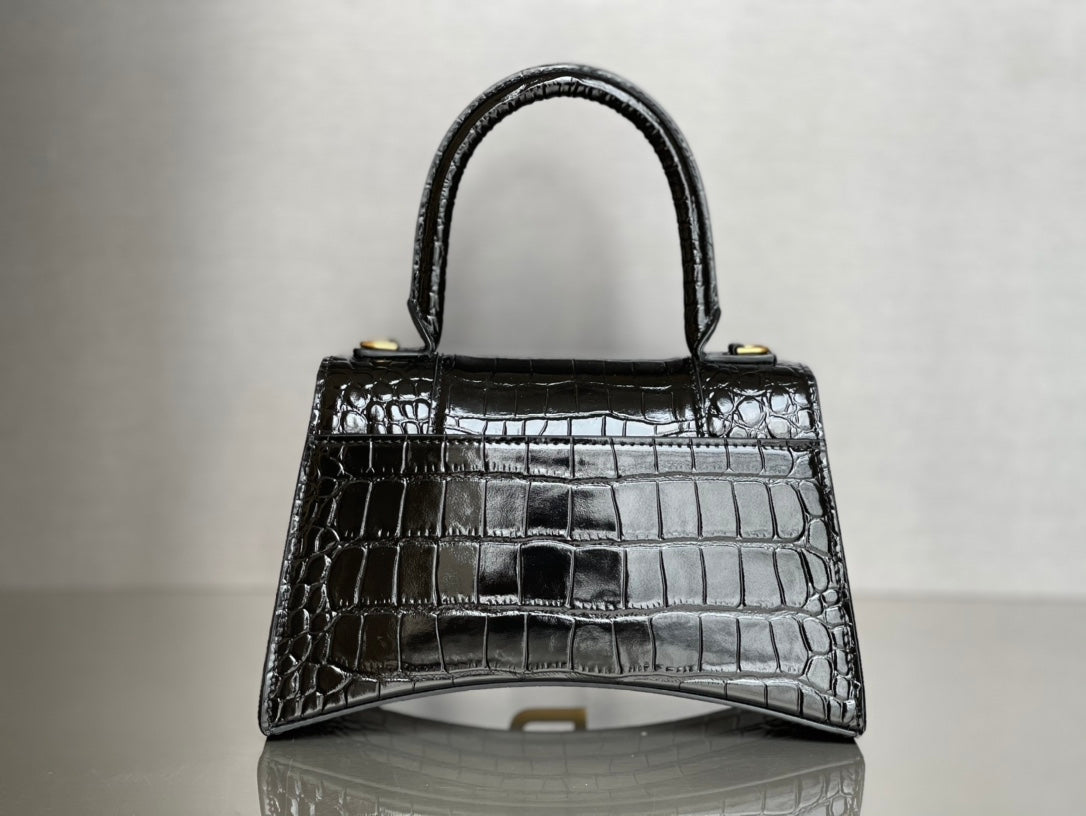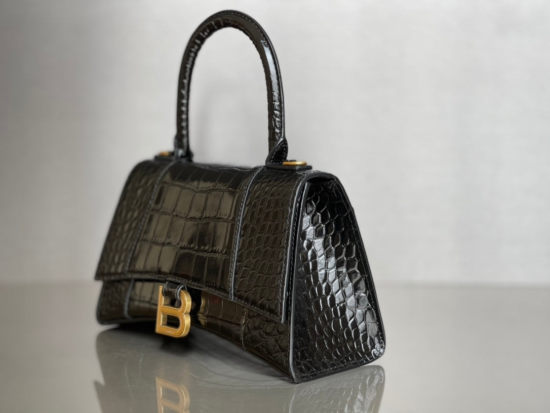 Balenciaga Bag - Top-Level Authentic Replica #𝗕𝗮𝗹𝗲𝗻𝗰𝗶𝗮𝗴𝗮# Crocodile Pattern Black with Gold Hardware【Upgraded Original Leather Version】Size S — 23cmCrocodile Pattern Original Leather Version 𝗛𝗼𝘂𝗿𝗴𝗹𝗮𝘀𝘀 Bag is brand new!🌟 Made from Italian original crocodile-pattern cowhide, the clear crocodile pattern rivals real crocodile, with excellent touch, always showing refined taste!🌟 Imported bronze hardware! Super stylish B-shaped zipper, I give this design a full score 💯, extremely fashionable and dazzling!🌟 Unique iconic curved shape is highly recognizable, instantly eye-catching and super cool! The exterior forms a half-moon shape.🌟 Inside the bag is a large open compartment with a zippered pocket, very spacious! Lined with lambskin, highly durable but costly! Made to be the best for those who truly appreciate it!Small: 19x8x21cmMedium: 23x10x24cm