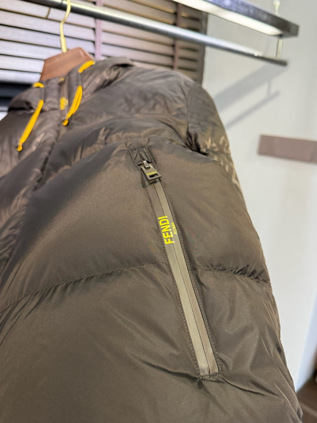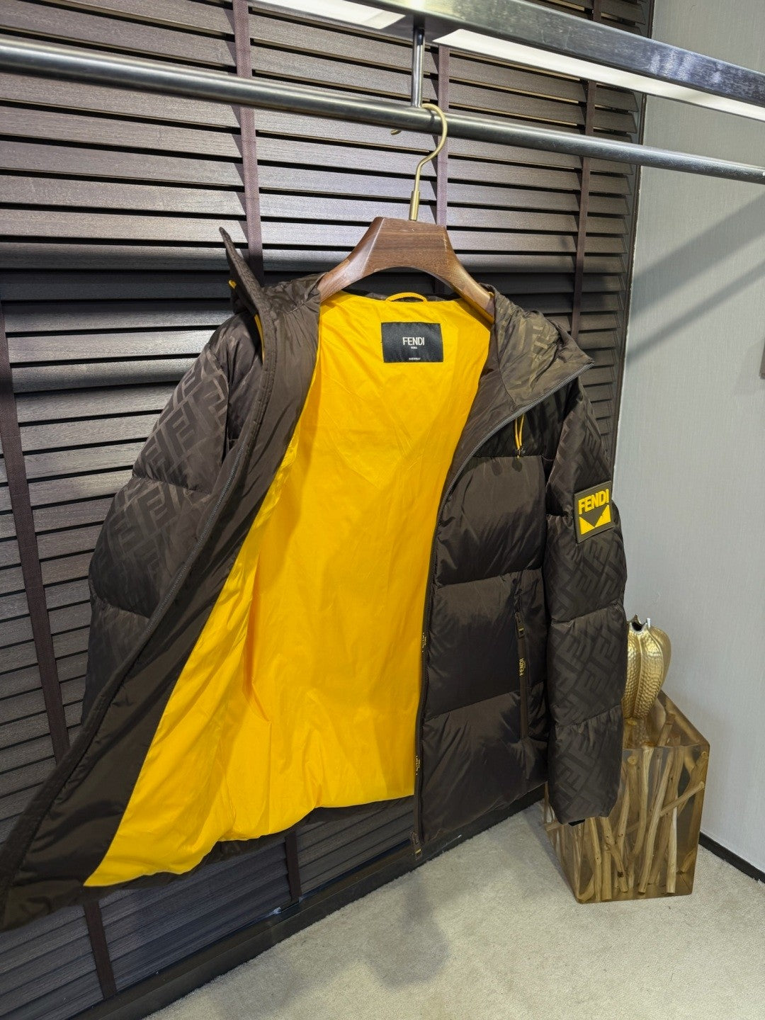 Fend&Fin's new FW2025 down jacket! A stylish and trendsetting style! Known for its elegant, refined, and opulent style. Features a high collar, zippered retractable hood, elastic cuffs, zippered pockets, and a waist-cinching hem. Waterproof zipper closure, made of stretch nylon. Filled with 90% down! 300g of fluffy down! The classic hooded design perfectly flatters the figure, accentuating the curvy waistline for a noticeably slimmer and taller look. Customized glossy electroplated zipper hardware and wide, custom-designed webbing embellish the inside of the zipper for a more charming and elegant look.