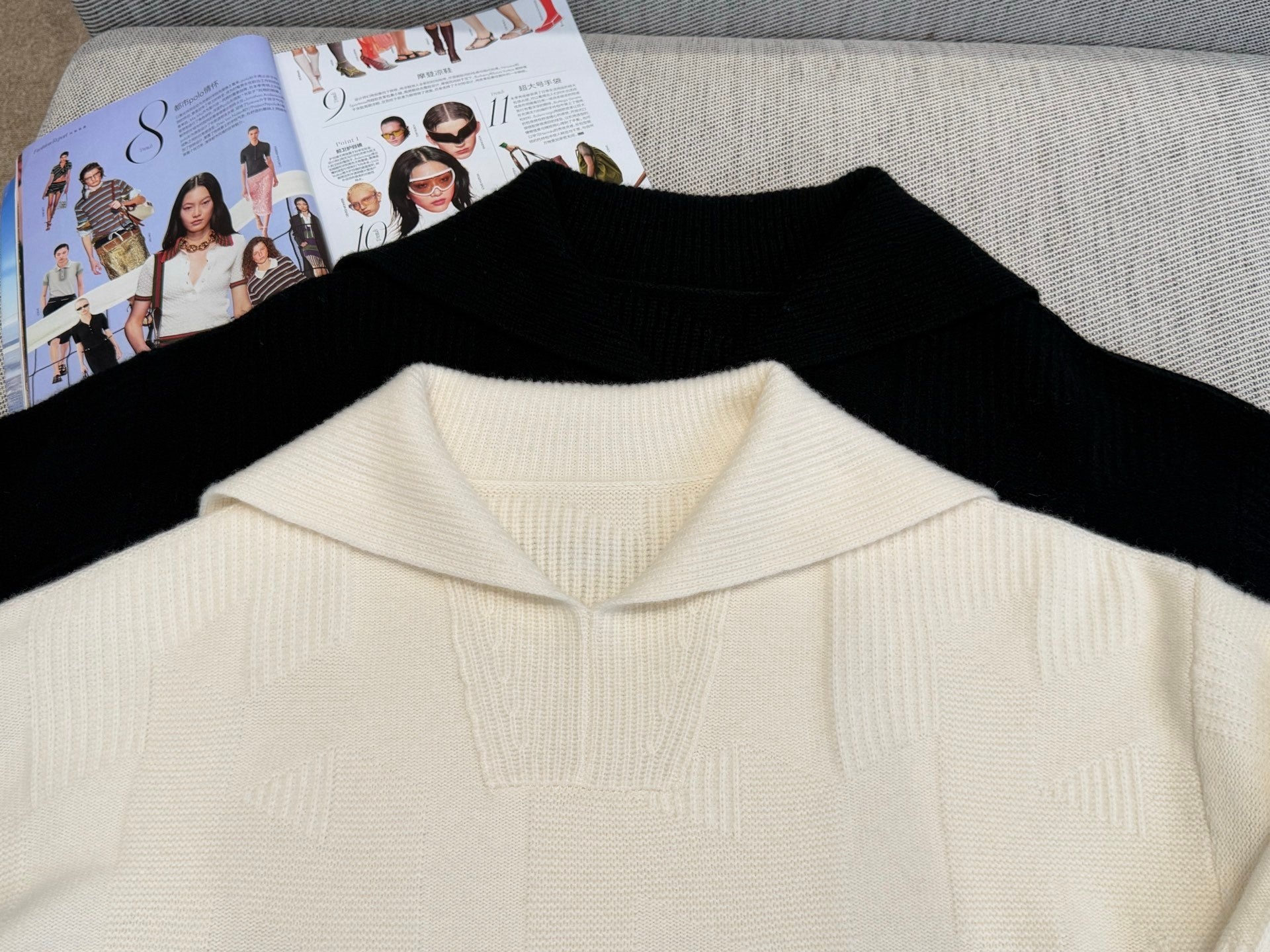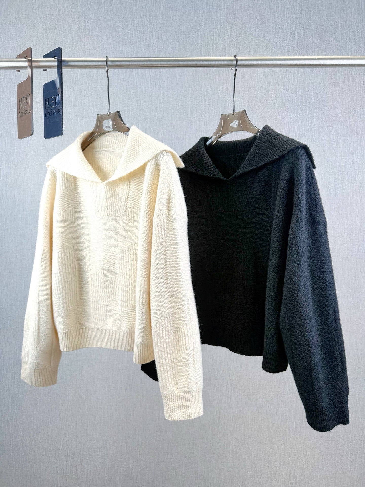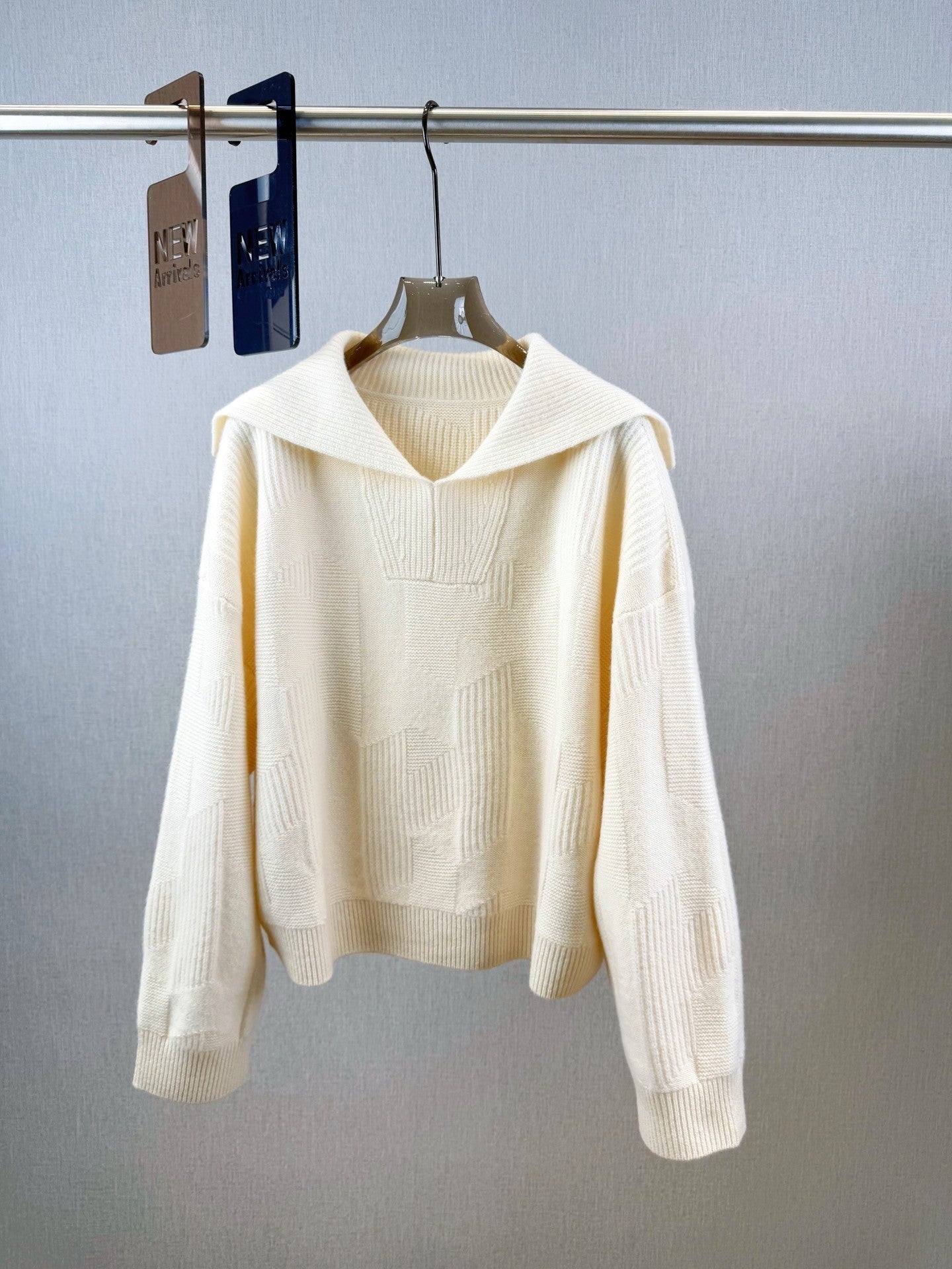 Aijia | H-patterned Large Lapel Pullover. This embellished pullover features a staggered "H" pattern interwoven into a geometric pattern, creating a three-dimensional, textured look. The eye-catching large lapel design is a fashionable and versatile style! Simple yet stylish. Easily create a relaxed yet fashionable look.