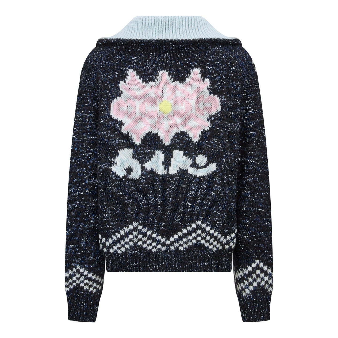 This waistband features the creative vision created by Pharrell Williams and Nigo for Fall/Winter 2025. A koi fish, adorned with the LV logo, swims across the front, while cherry blossoms and Japanese characters highlight Nigo's cultural roots. The sophisticated pattern is applied through intarsia and embroidery to the cotton-wool blend knit, creating a delicate, handcrafted look. A beaded zipper pull adds an elegant touch to the comfortable silhouette.