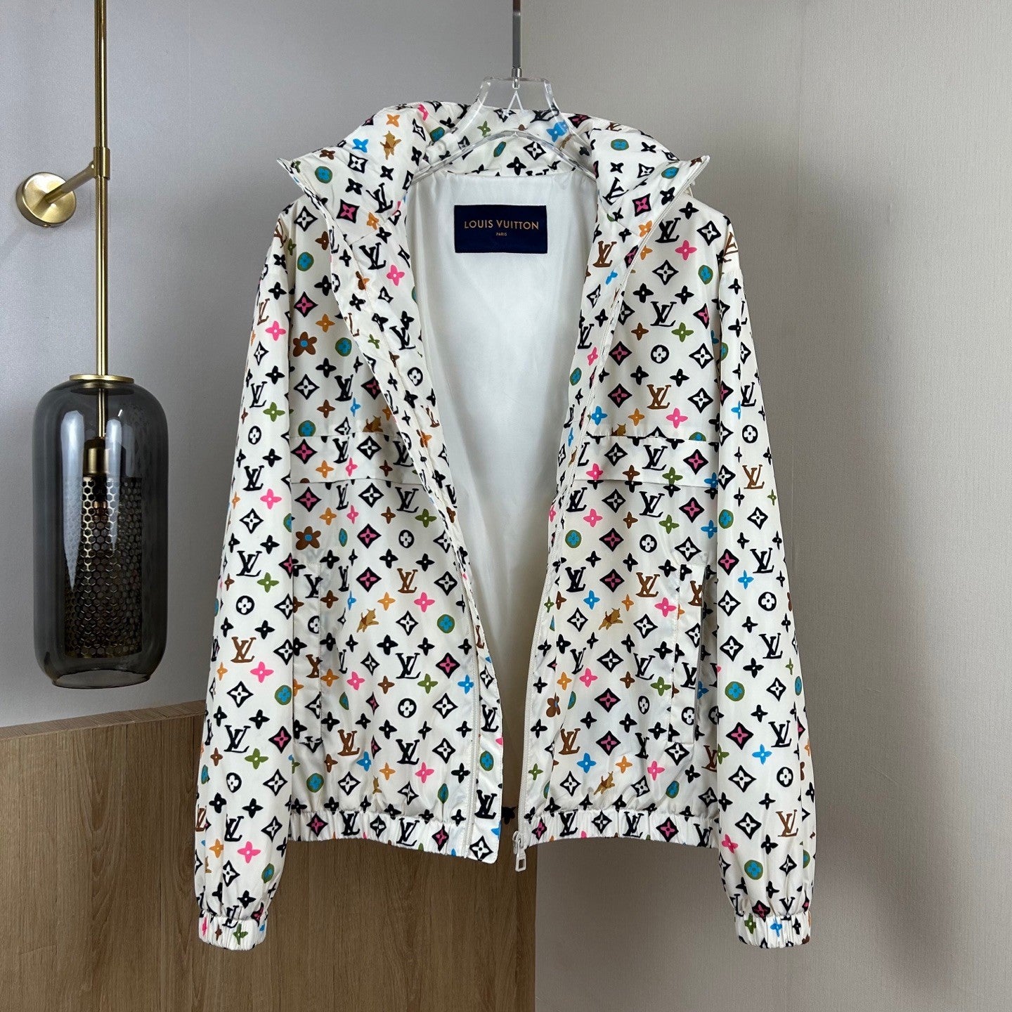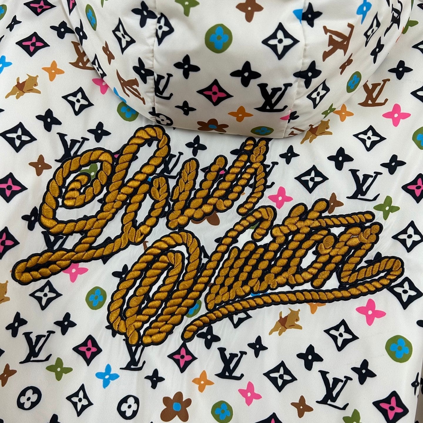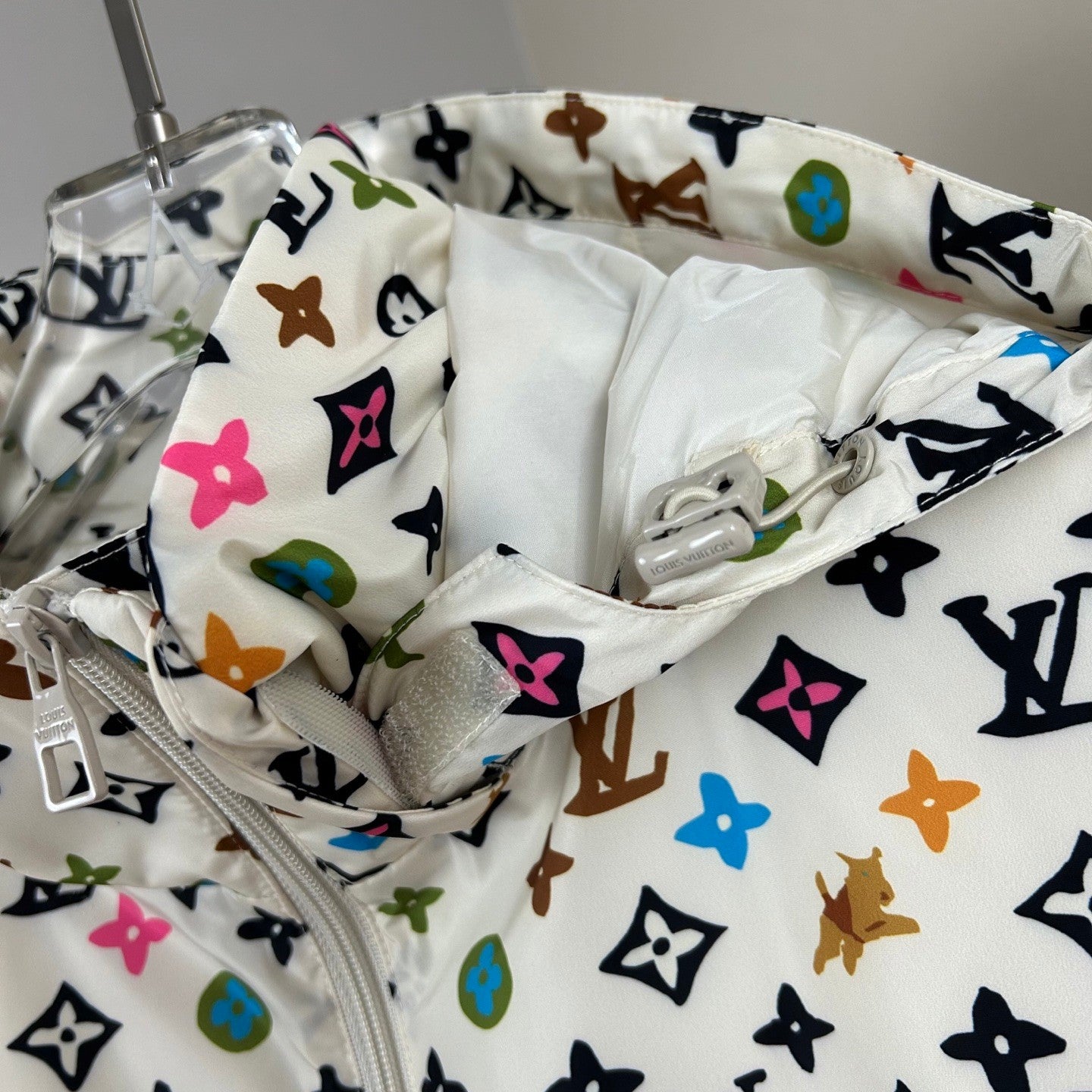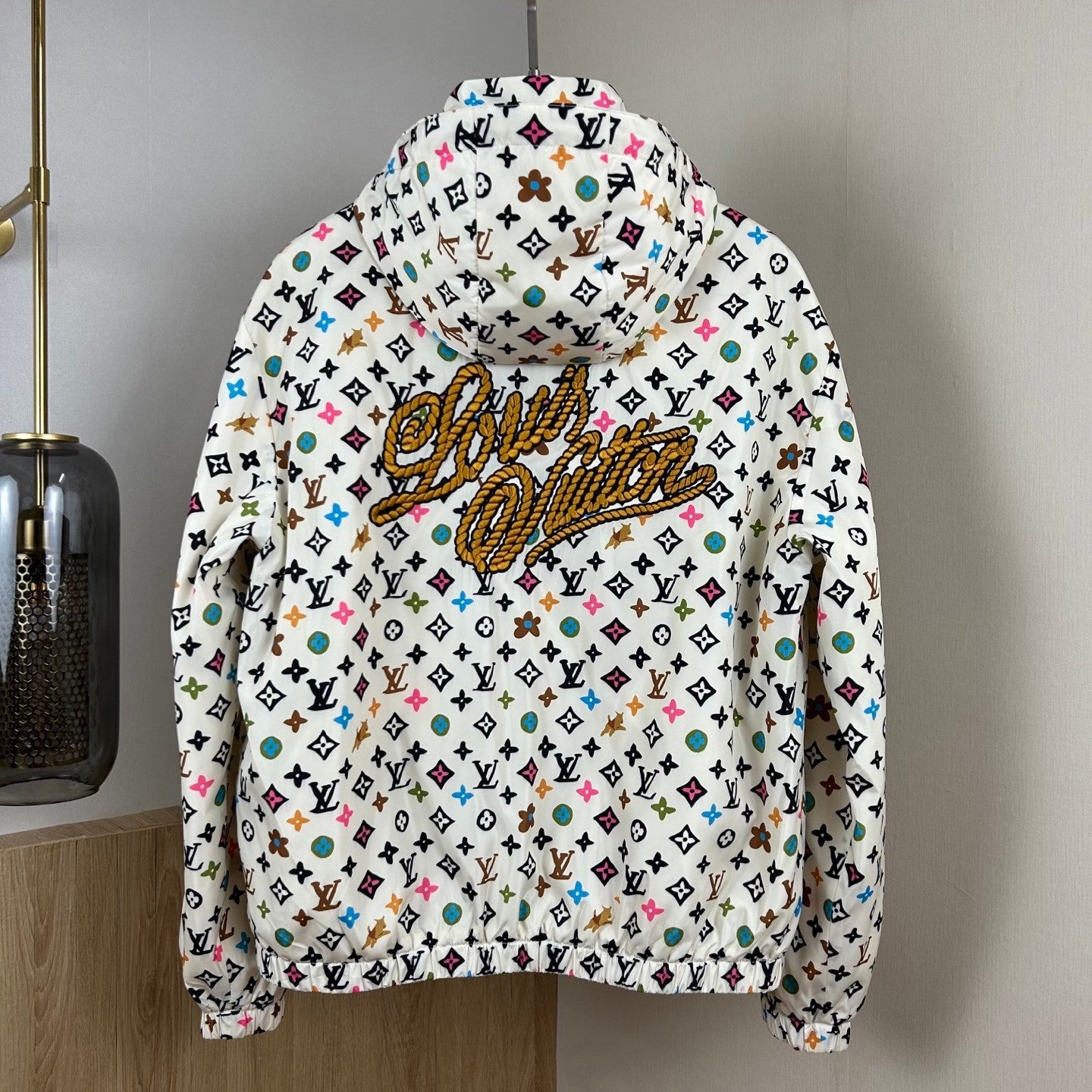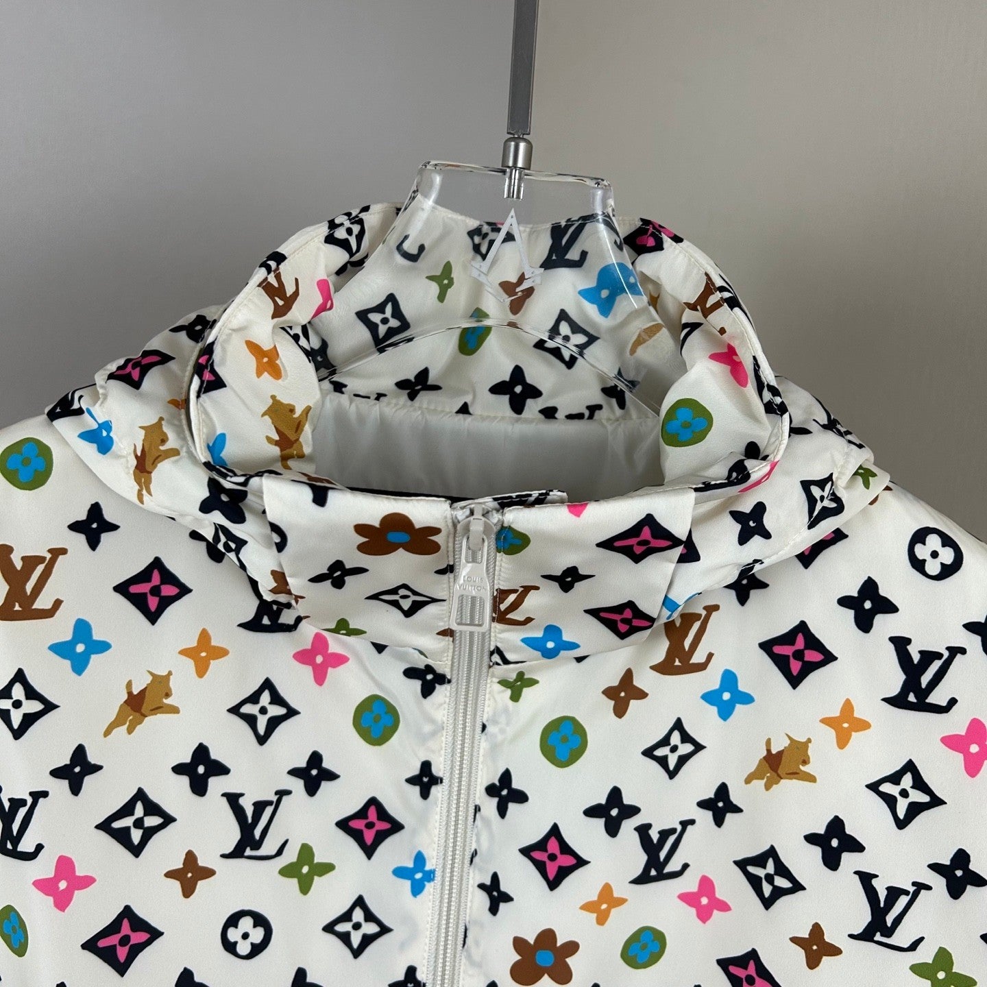 L-V autumn/winter new model, a detachable hooded padded jacket with a color-block logo print and zippered front. This sophisticated jacket offers quality, comfort, and a luxurious feel!
