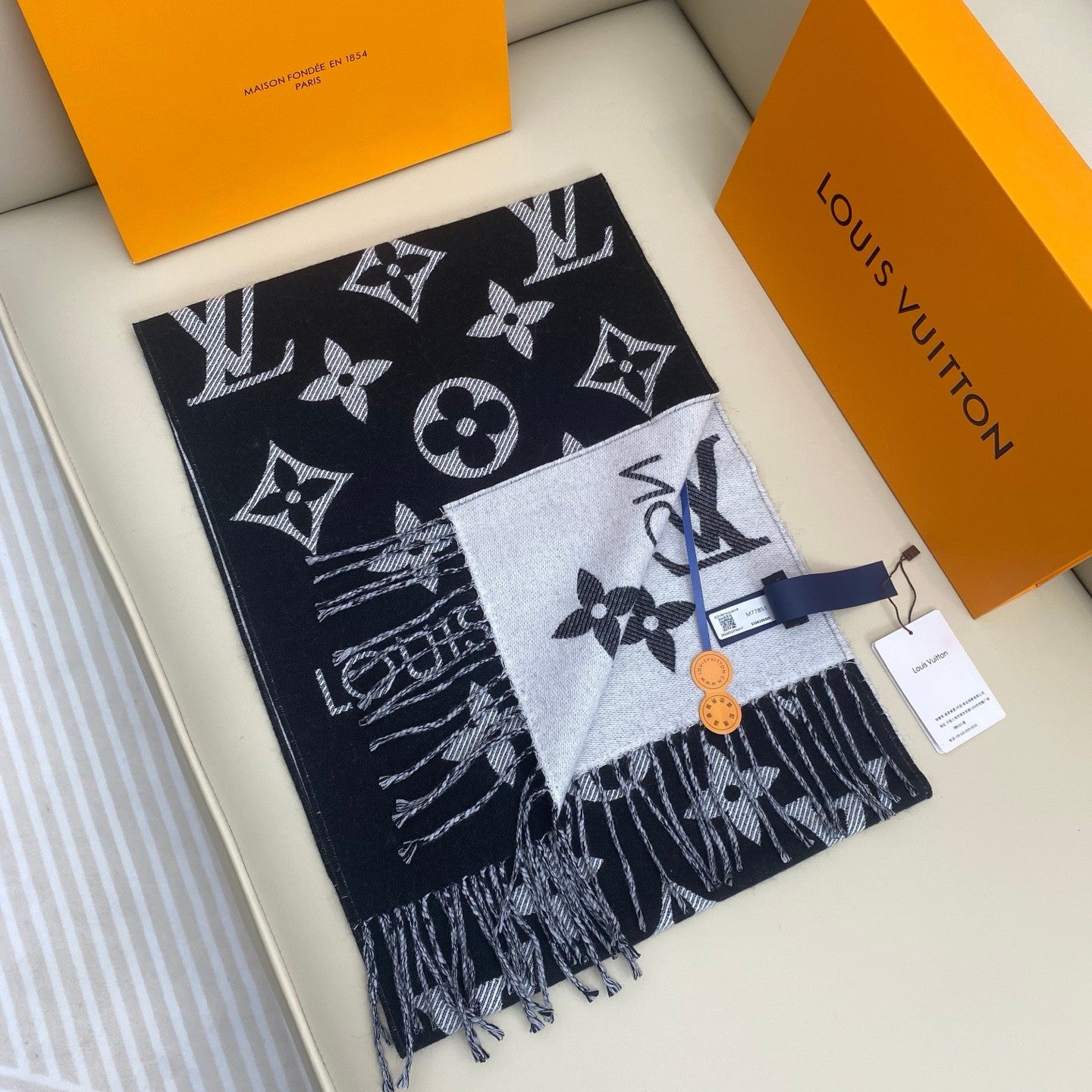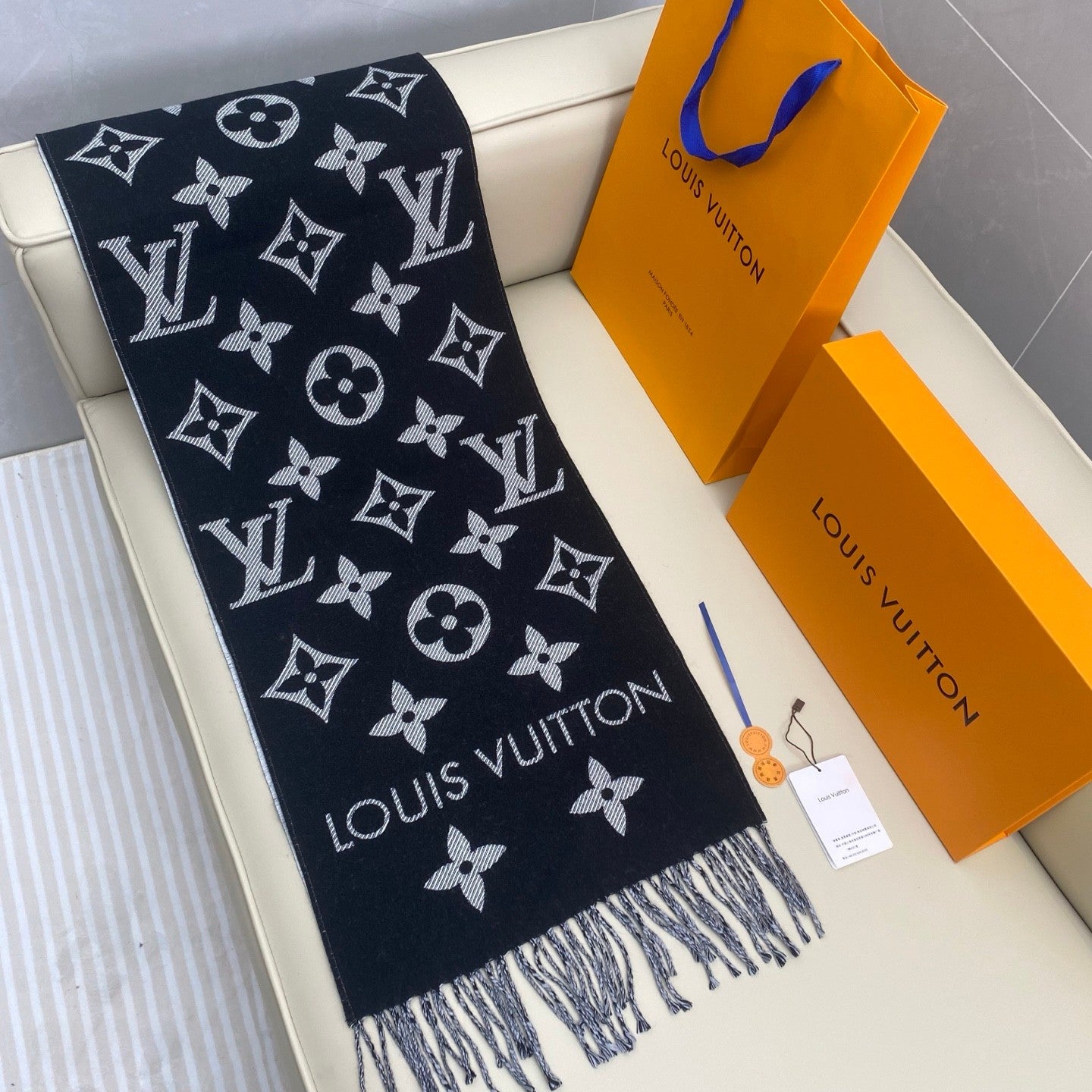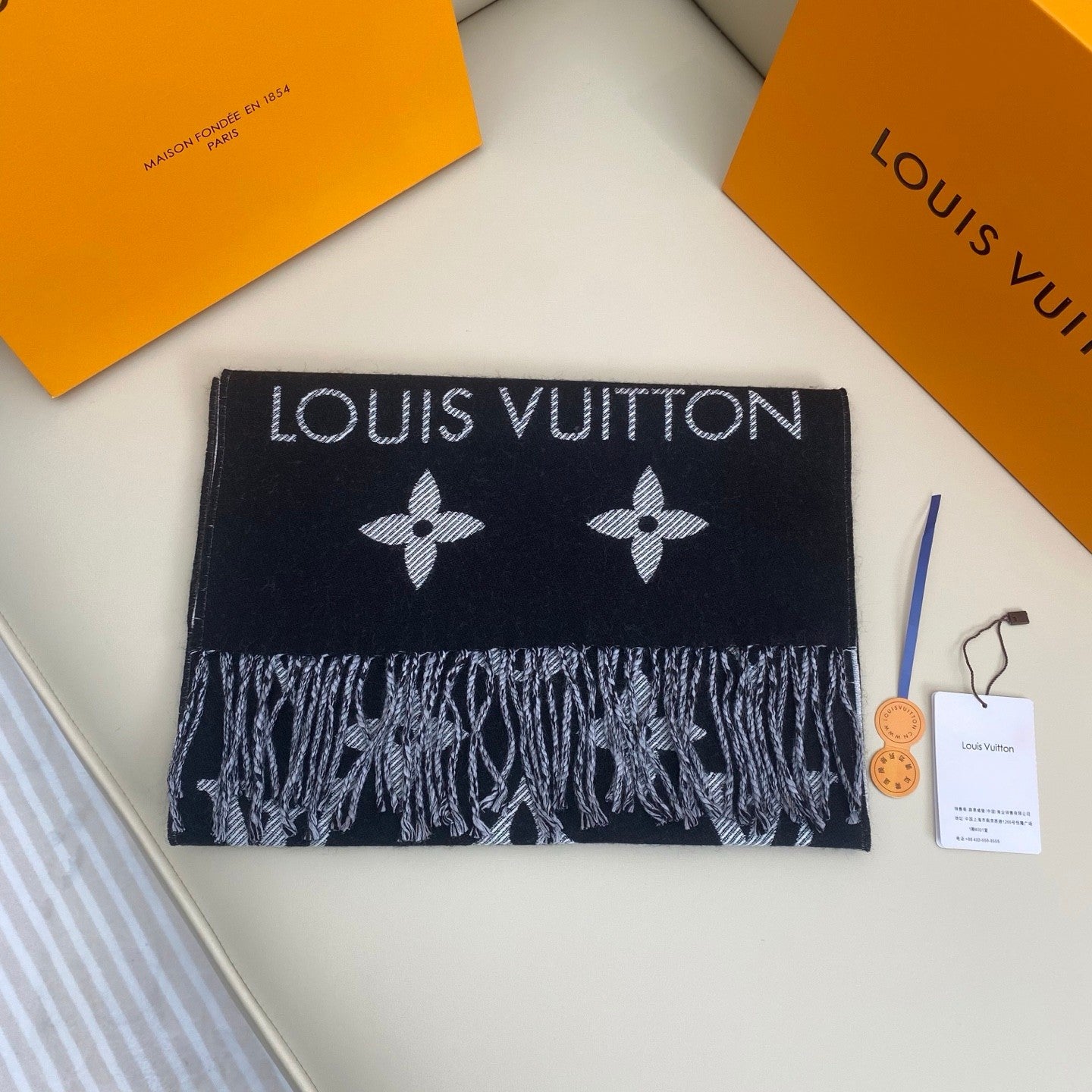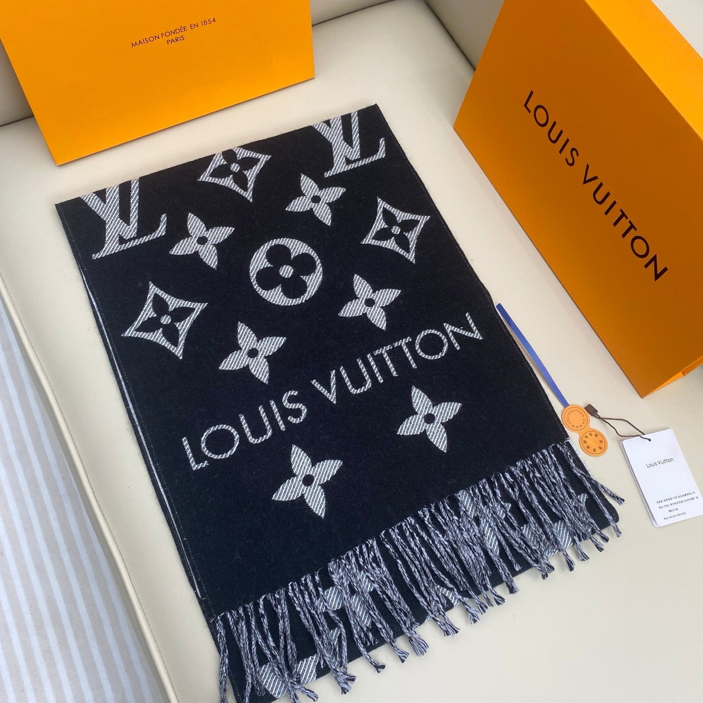 The LV ESSENTIAL scarf elongates the elements of the classic Monogram pattern, creating a fresh look. The wool is soft, delicate, and warm against the skin! Available for both men and women.