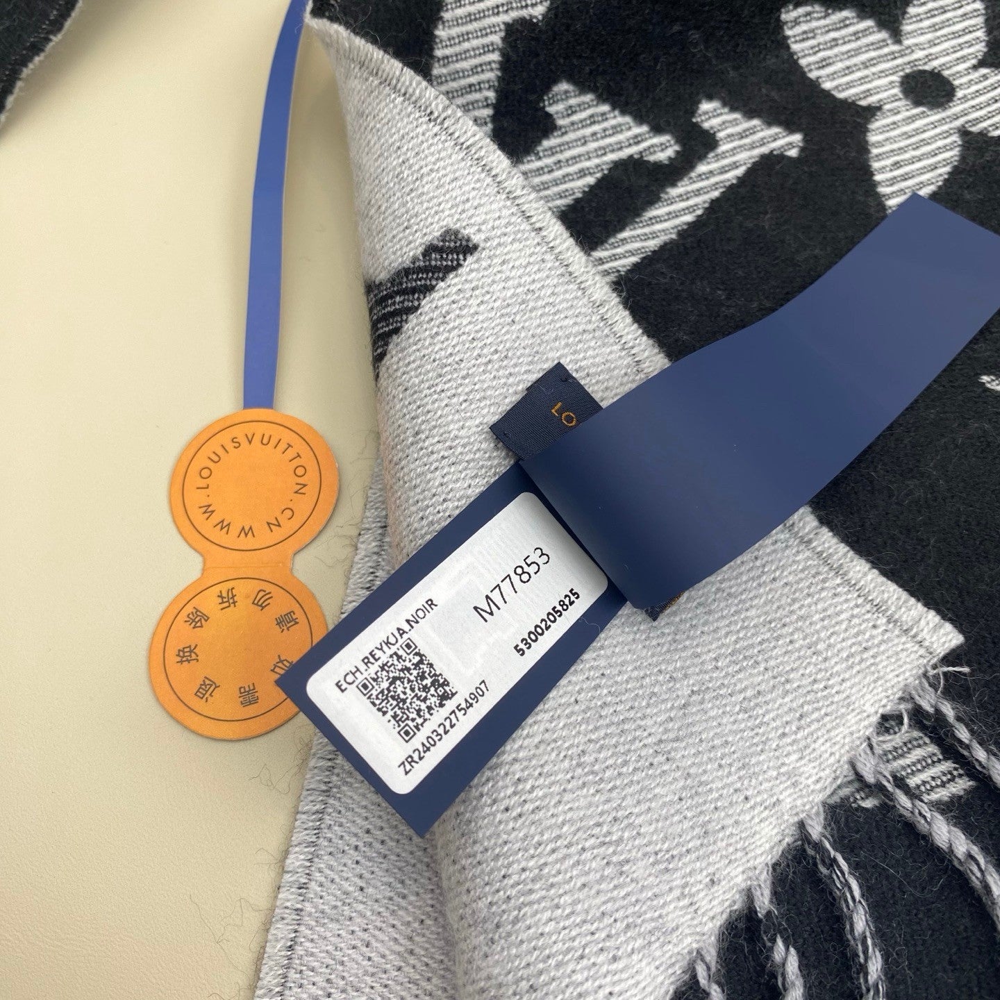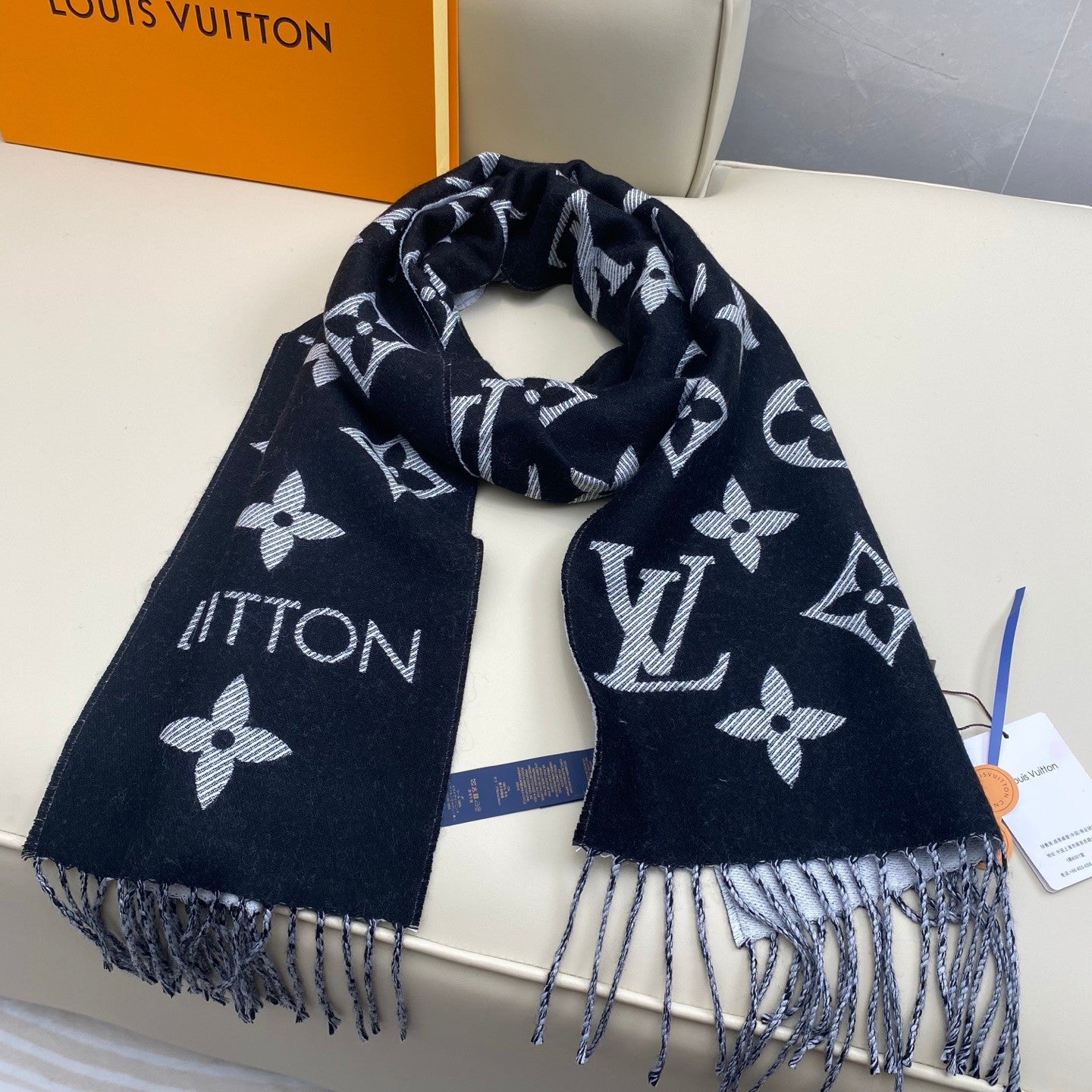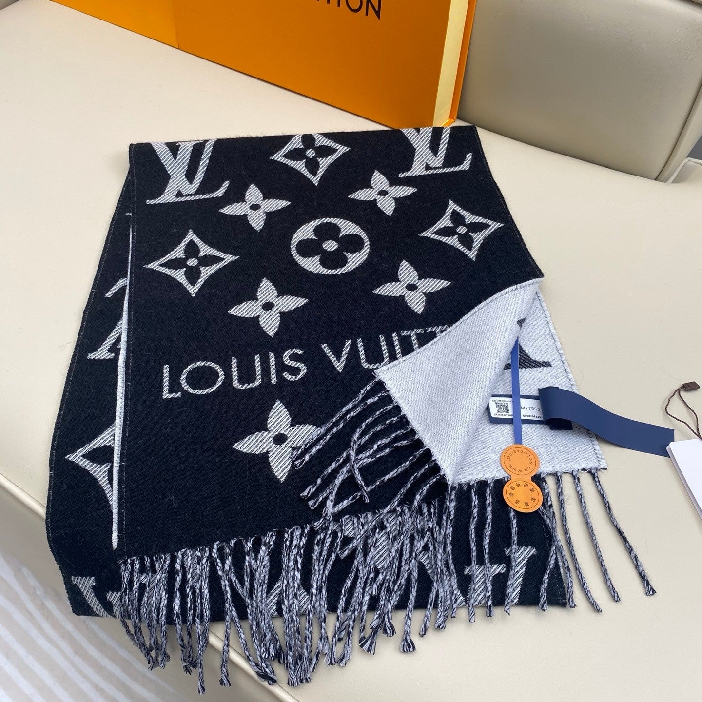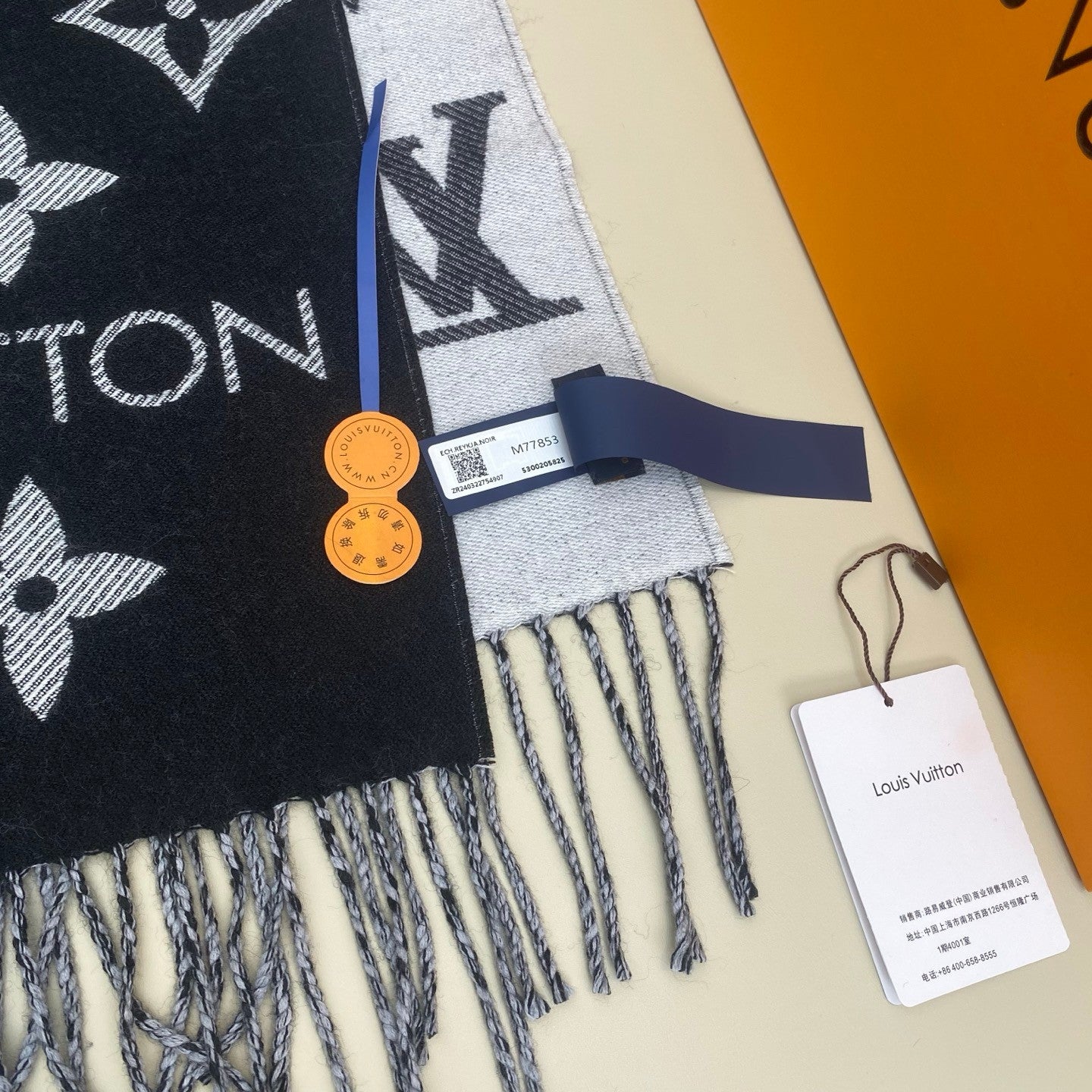 The LV ESSENTIAL scarf elongates the elements of the classic Monogram pattern, creating a fresh look. The wool is soft, delicate, and warm against the skin! Available for both men and women.