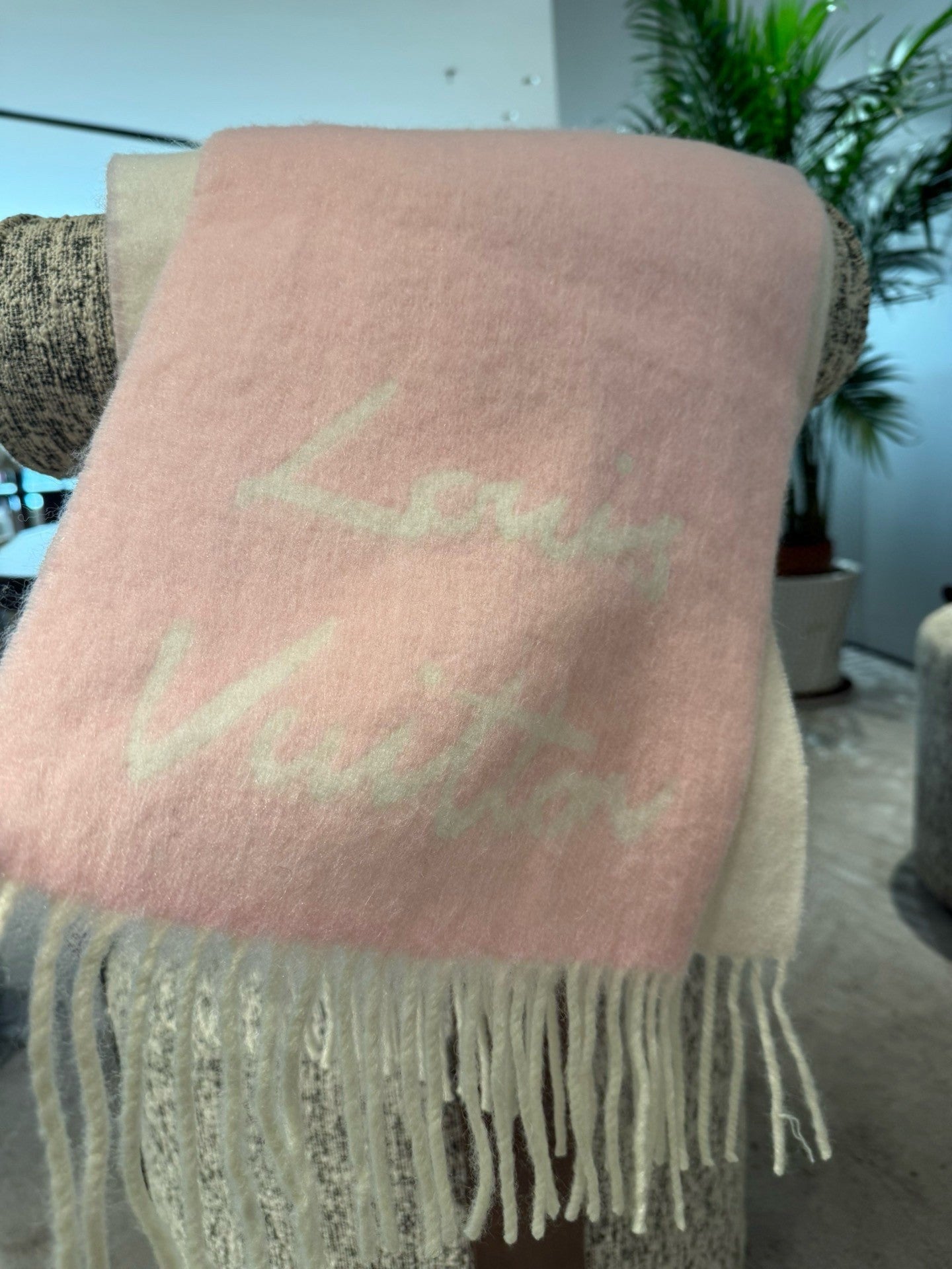 , the most beautiful scarf from Dalu in 25 years, exclusively available now. The Fluffygram scarf is crafted from a blend of alpaca and sheep wool, brushed for comfort and warmth. The handwritten Louis Vuitton signature adds a touch of modern style to any everyday look.
