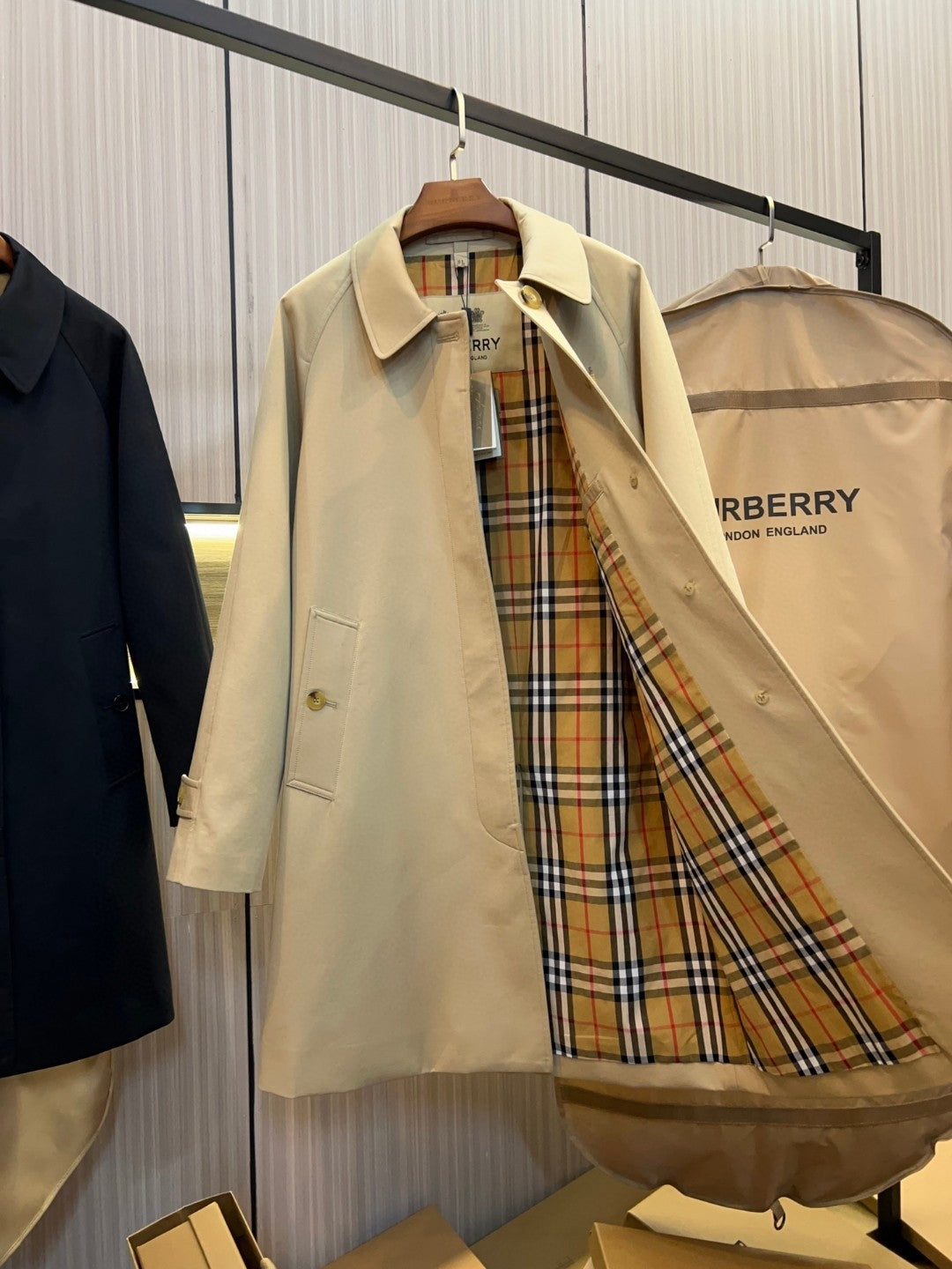 Crafted from custom gabardine cotton with wrinkle-resistant construction, woven in a prestigious mill. Designed for a relaxed fit, it's lined with a classic check pattern inspired by the signature pieces of the house of B. This style features a relaxed fit.