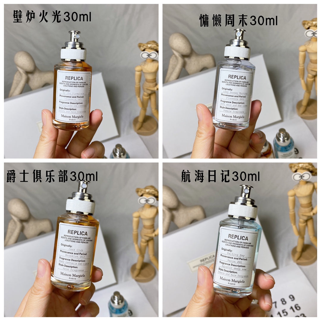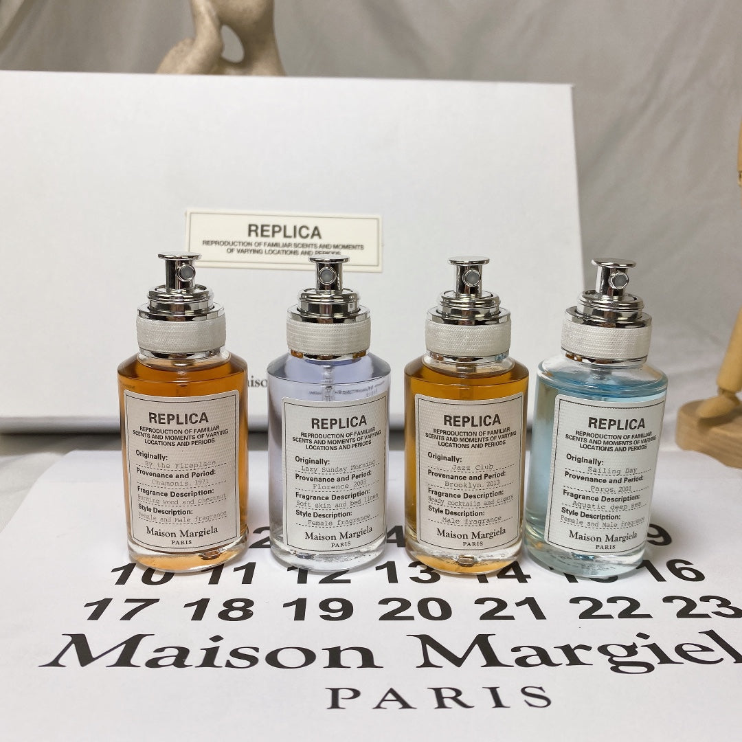 Martin Margiela Eau de Parfum Sample Set of 4 (30ml)! Contains: 4 x 30ml fragrances with spray nozzles. Scents: Lazy Sunday, Fireplace, Sailing Diary, Jazz Club.