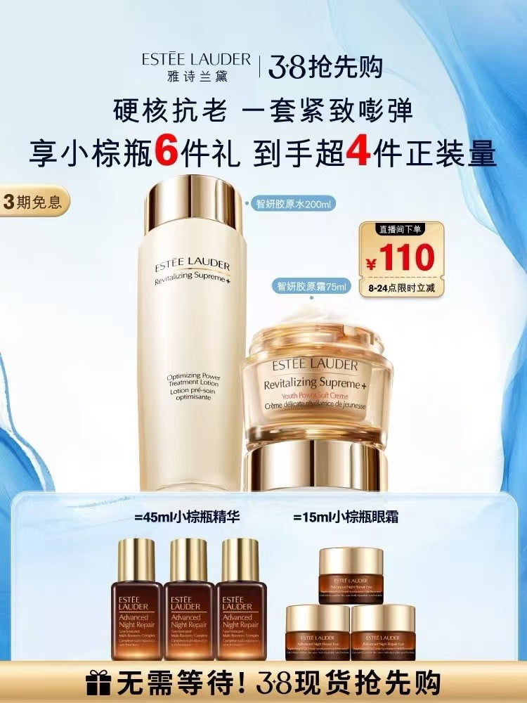 Estée Lauder Smart 6+2 Set Brightening Edition! Contains: Smart Collagen Water 200ml, Smart Collagen Cream 75ml, Advanced Night Repair Serum 15ml x 3, Anti-Blue Light Eye Cream 5ml x 3.