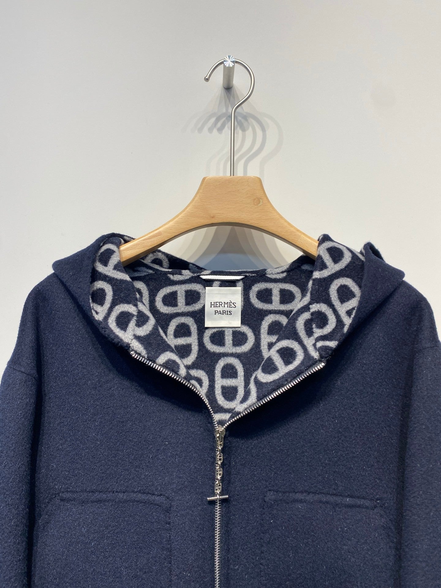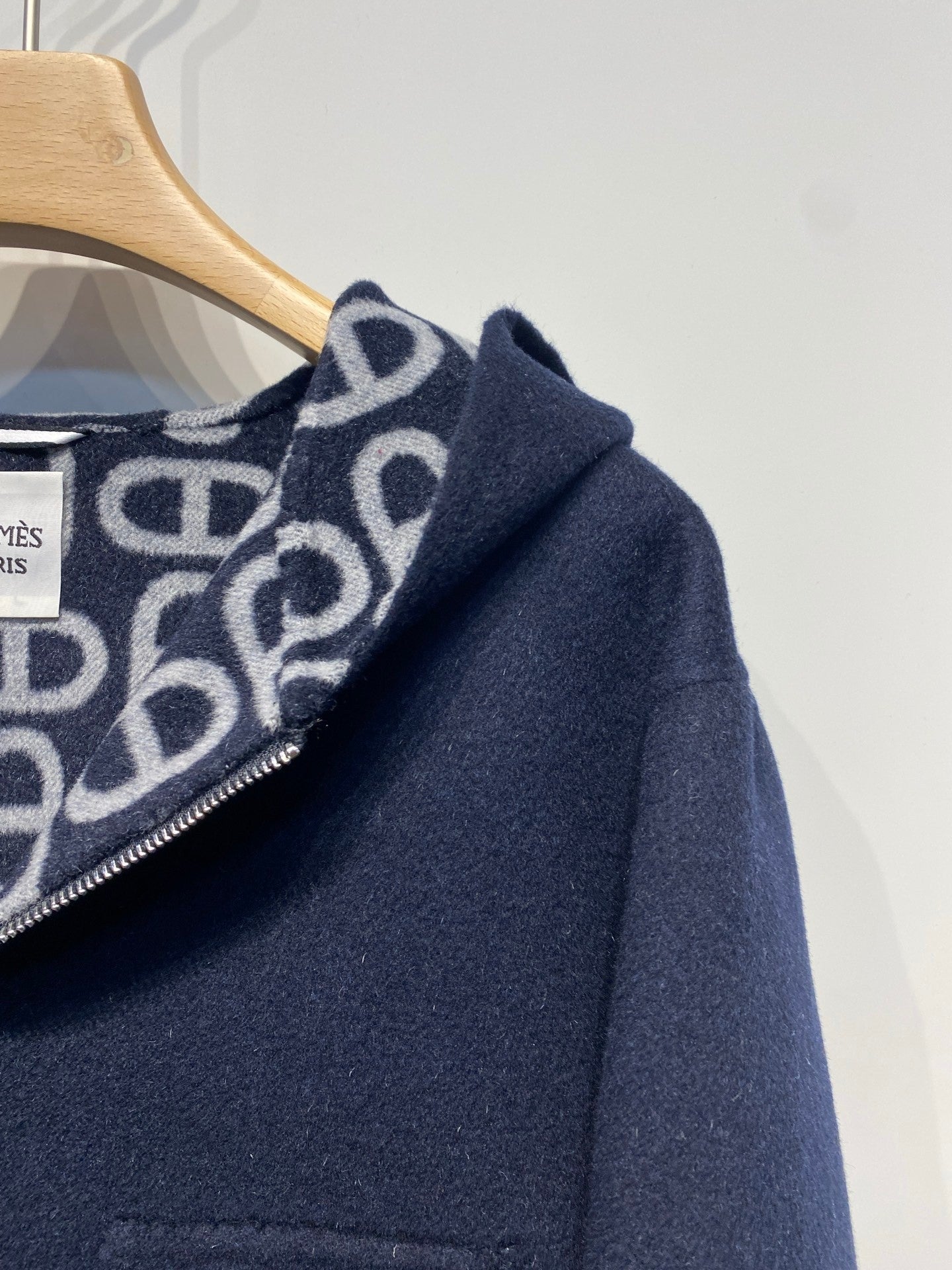 (Size Change Only) Hermès Pignose Wool Coat with Cropped Hood