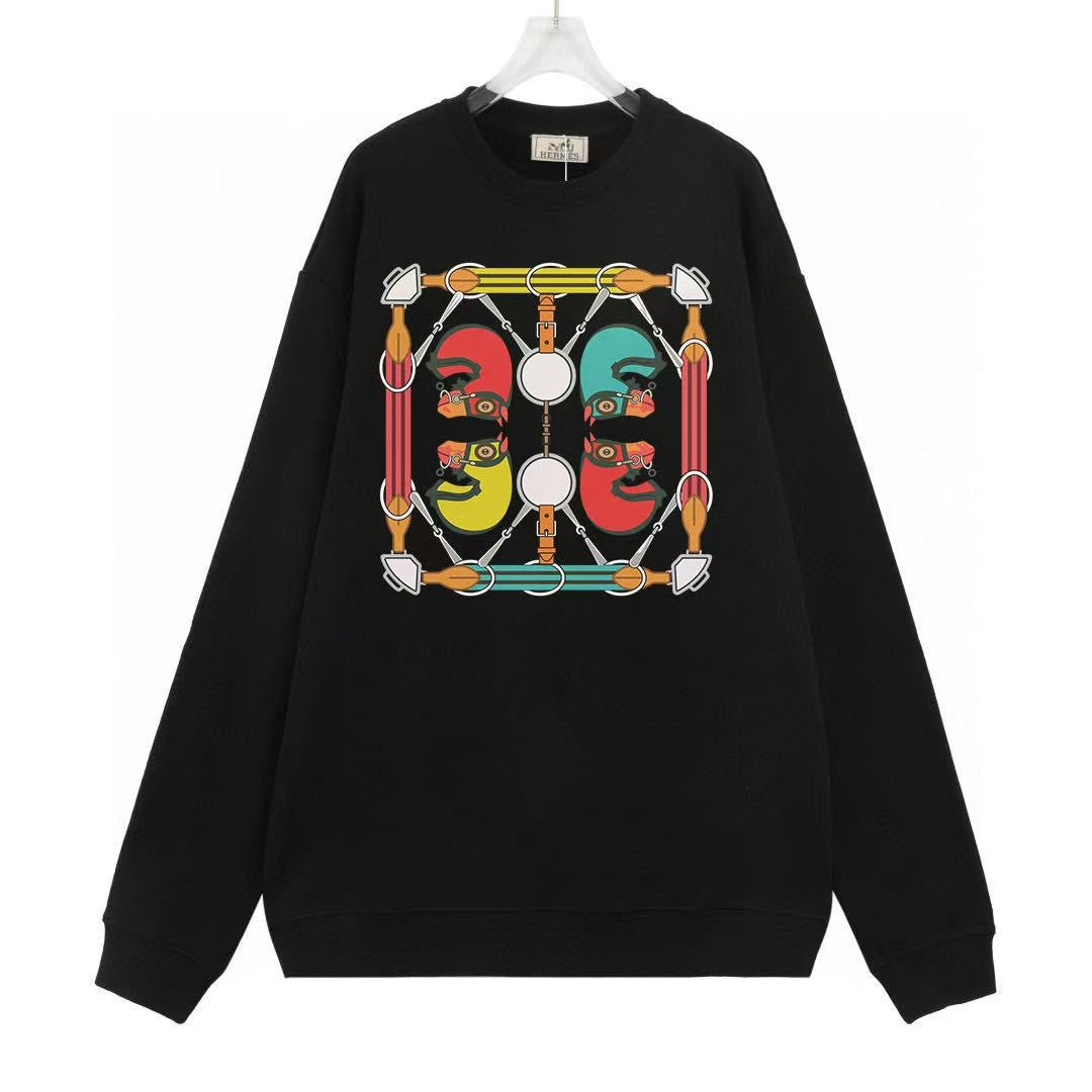 💥 HERMES 2024 Autumn and Winter Unisex Couple's Style👫The latest trade order long-sleeved sweatshirt, in full condition!! Internet celebrity style! The craftsmanship uses pattern logo embossing printing technology design! The upper body is comfortable and breathable, not stiff, and the overall has a rich three-dimensional sense. Quality export order, customized exclusive pure cotton fabric tailoring, to meet the commuters' demand for simple clothing. The upper body effect is very good, slimming, not picky about body shape. The fabric workmanship... impeccable, good craftsmanship and good fabrics can show good taste. This is a must-have item for everyone! Color: Black Beige Size: S-XL