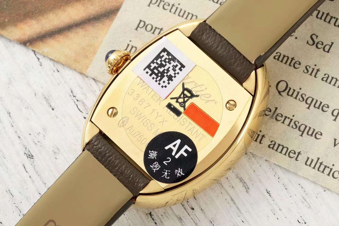 The strap is made of high-quality imported Italian calfskin and fastened with a pin buckle for easy wearing. The watch measures 31.4 mm x 23.1 mm and is 6.95 mm thick. It is water-resistant to approximately 3 bar.