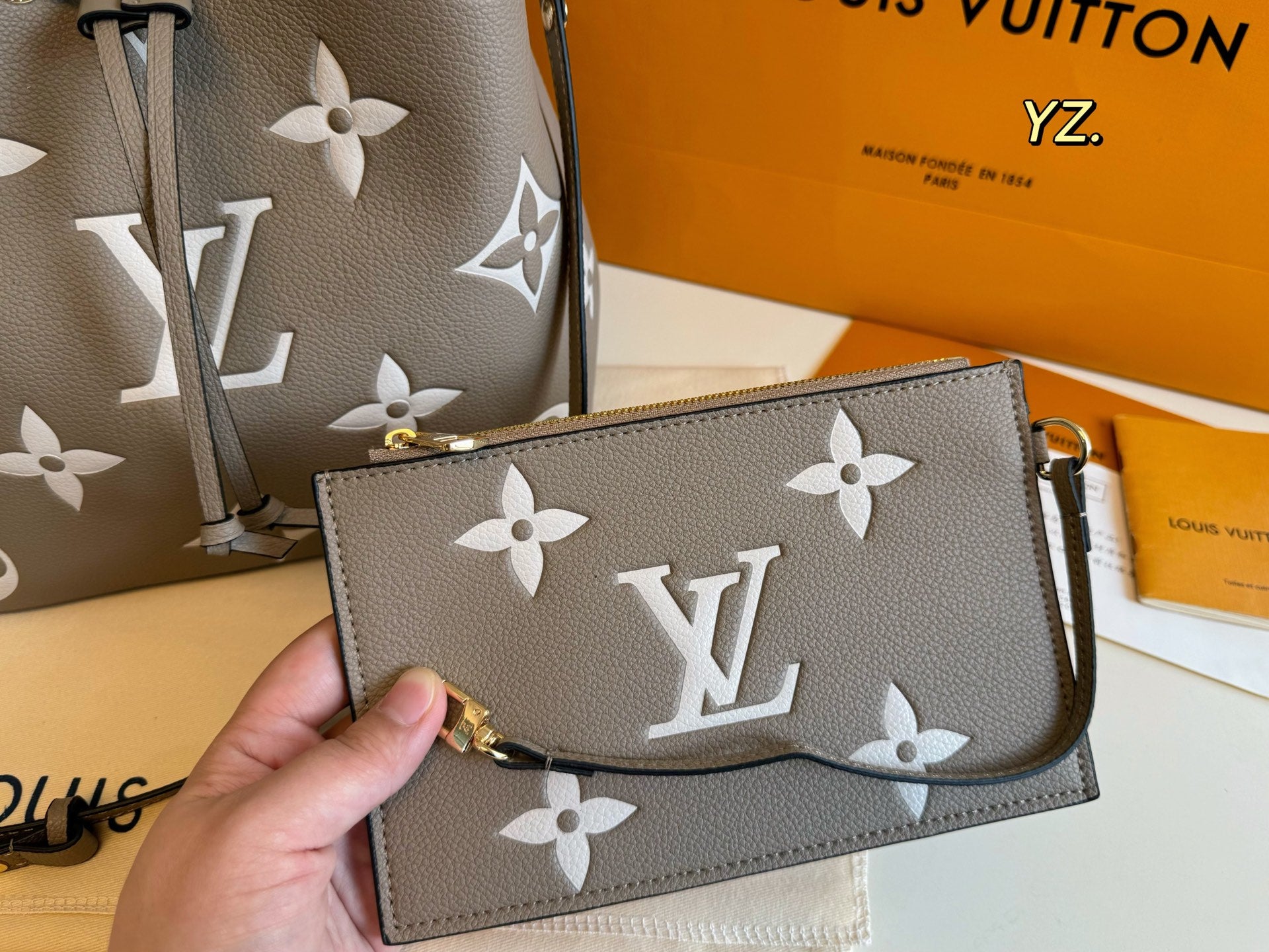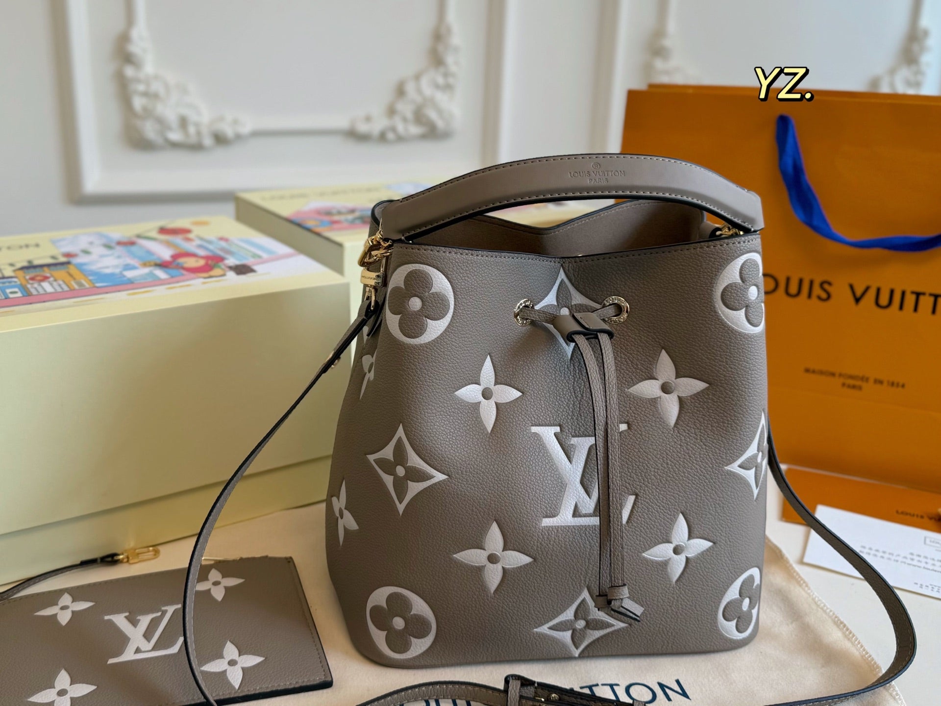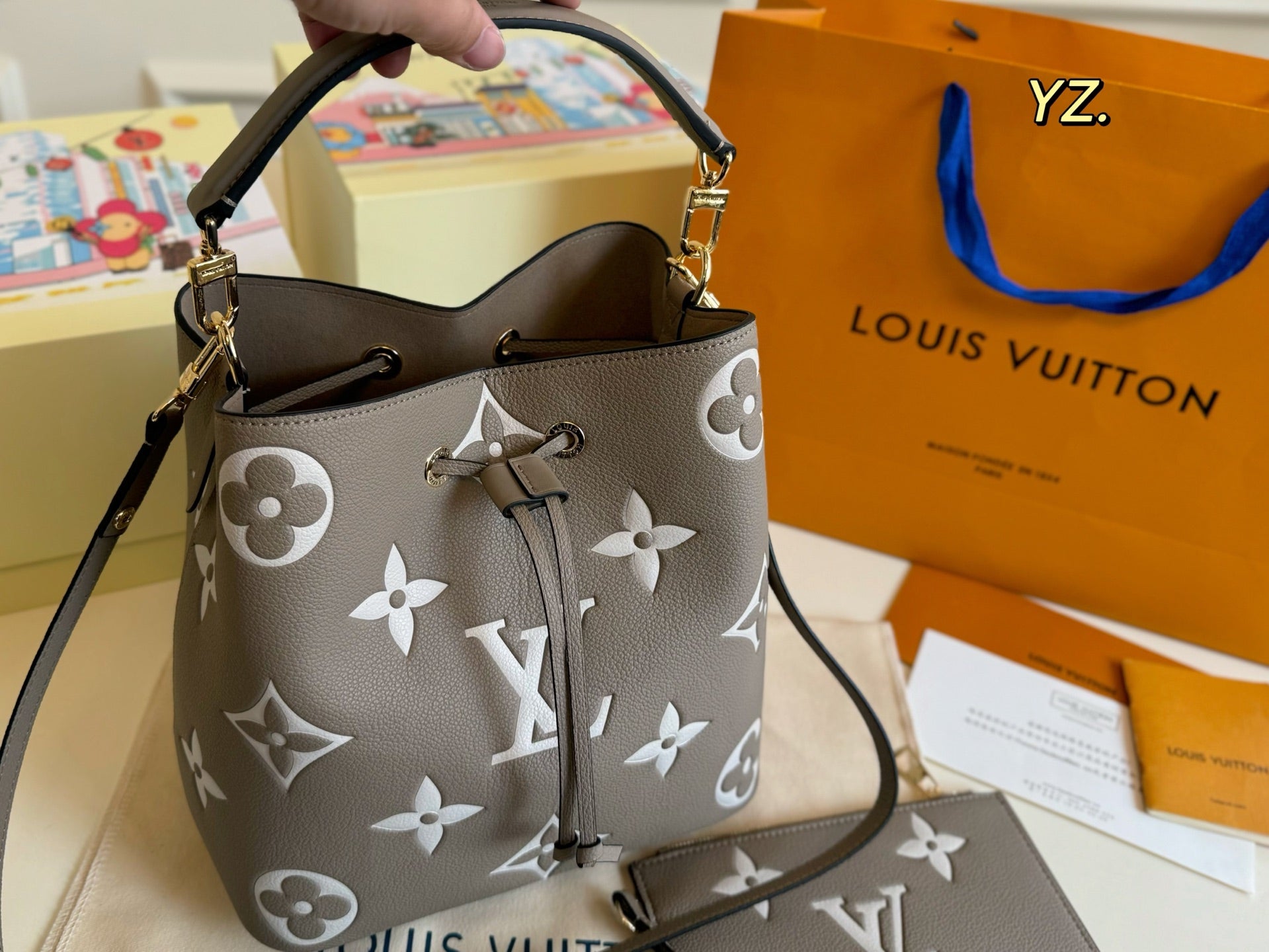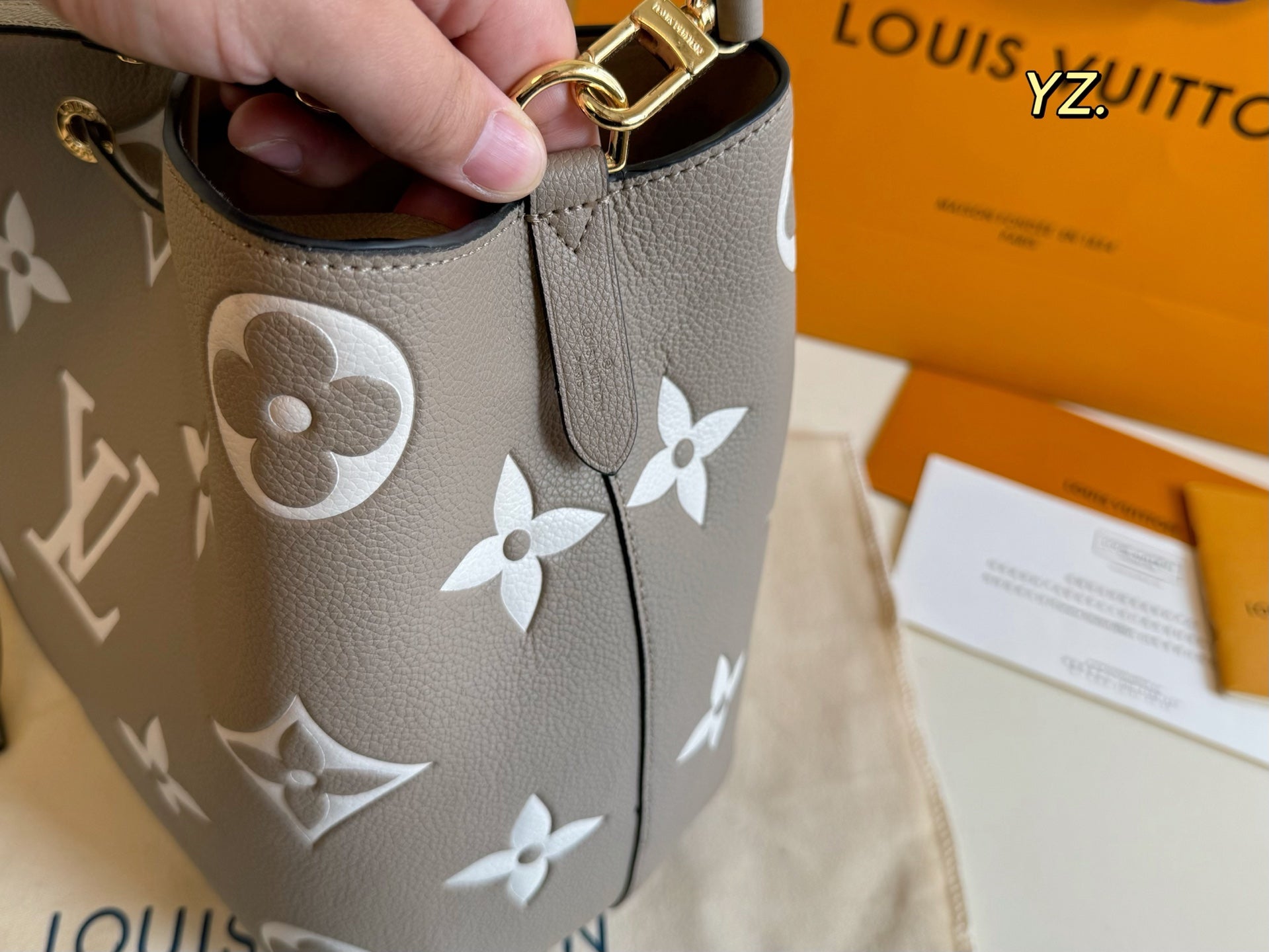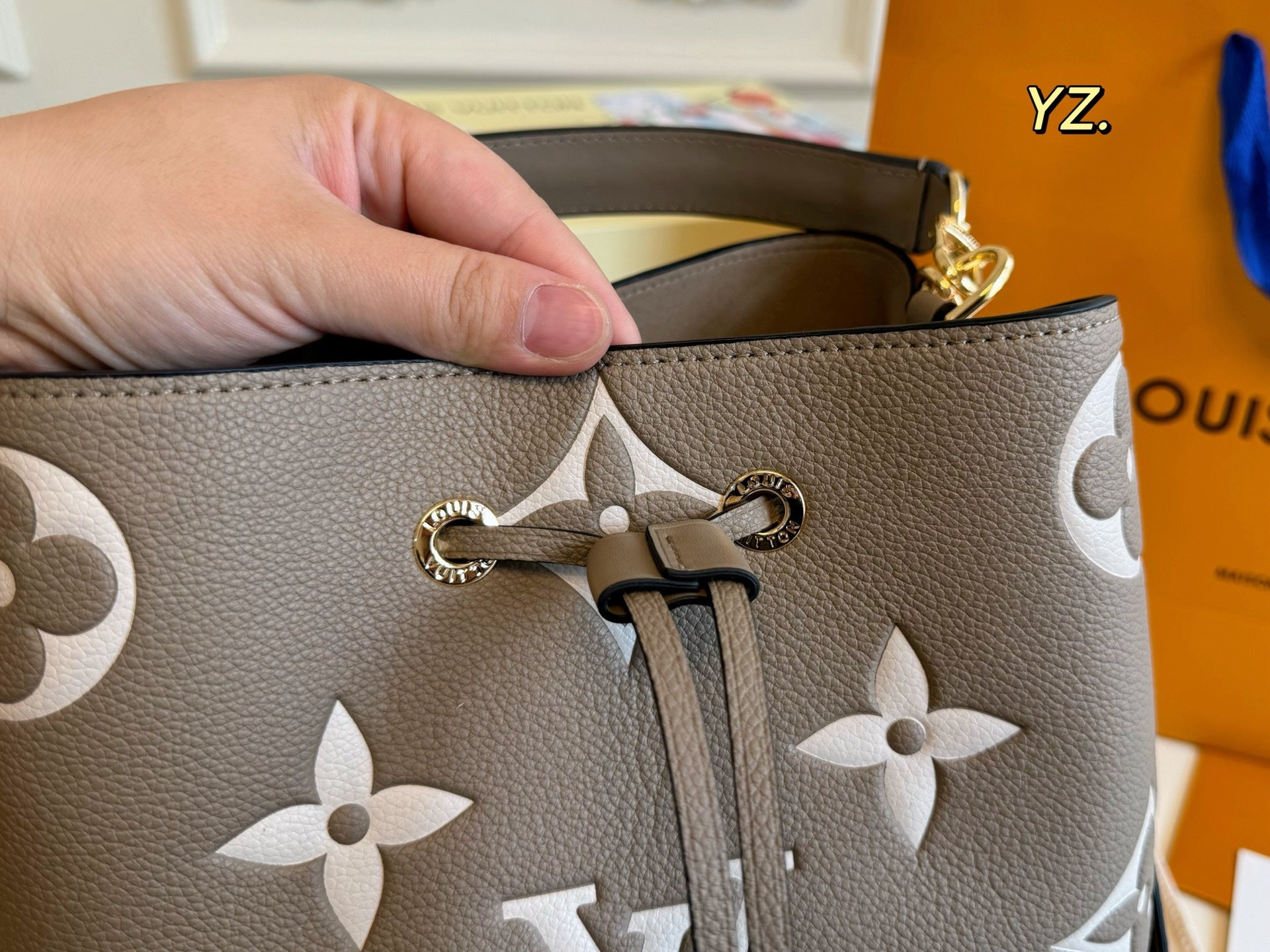 Size: 26×25 Louis Vuitton New NEONOE Embossed Bucket Bag 💕 Super timeless classic monogram color scheme!