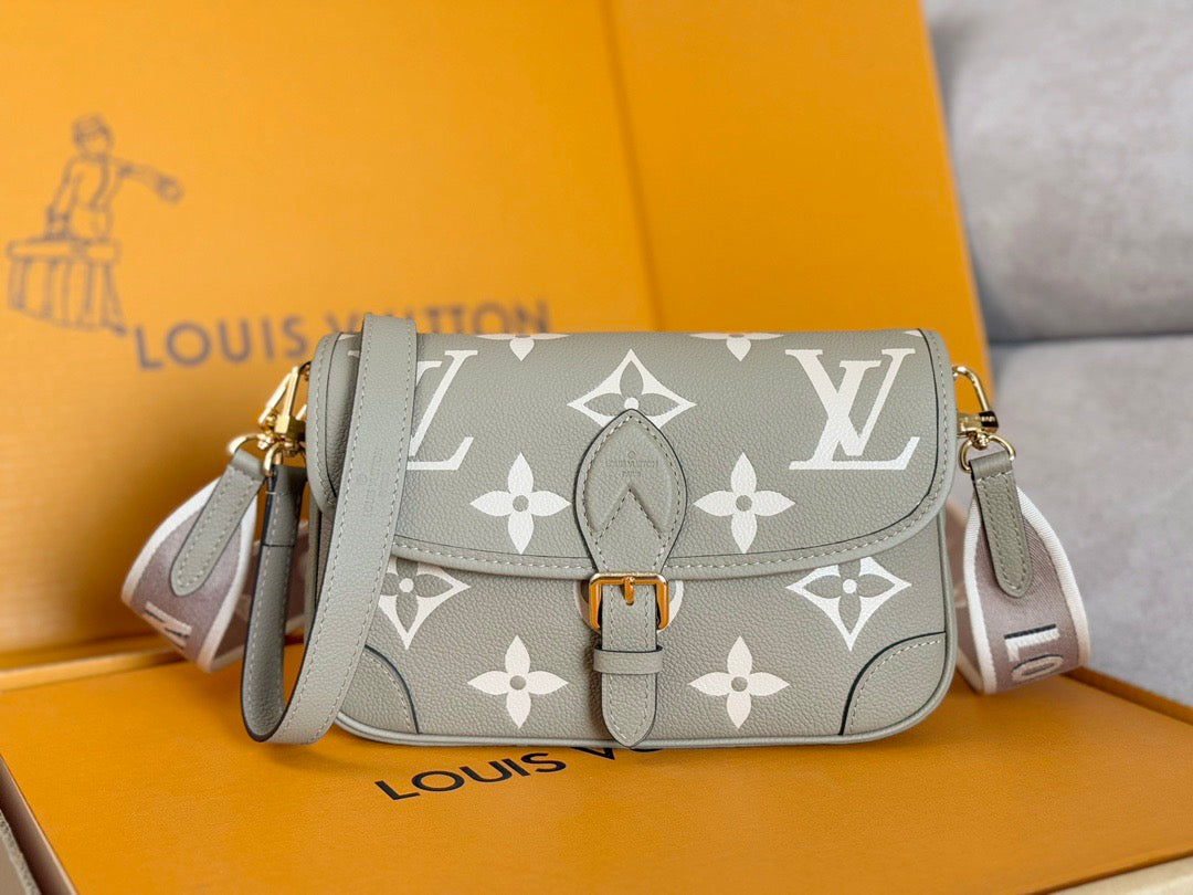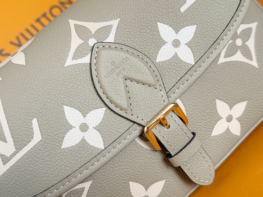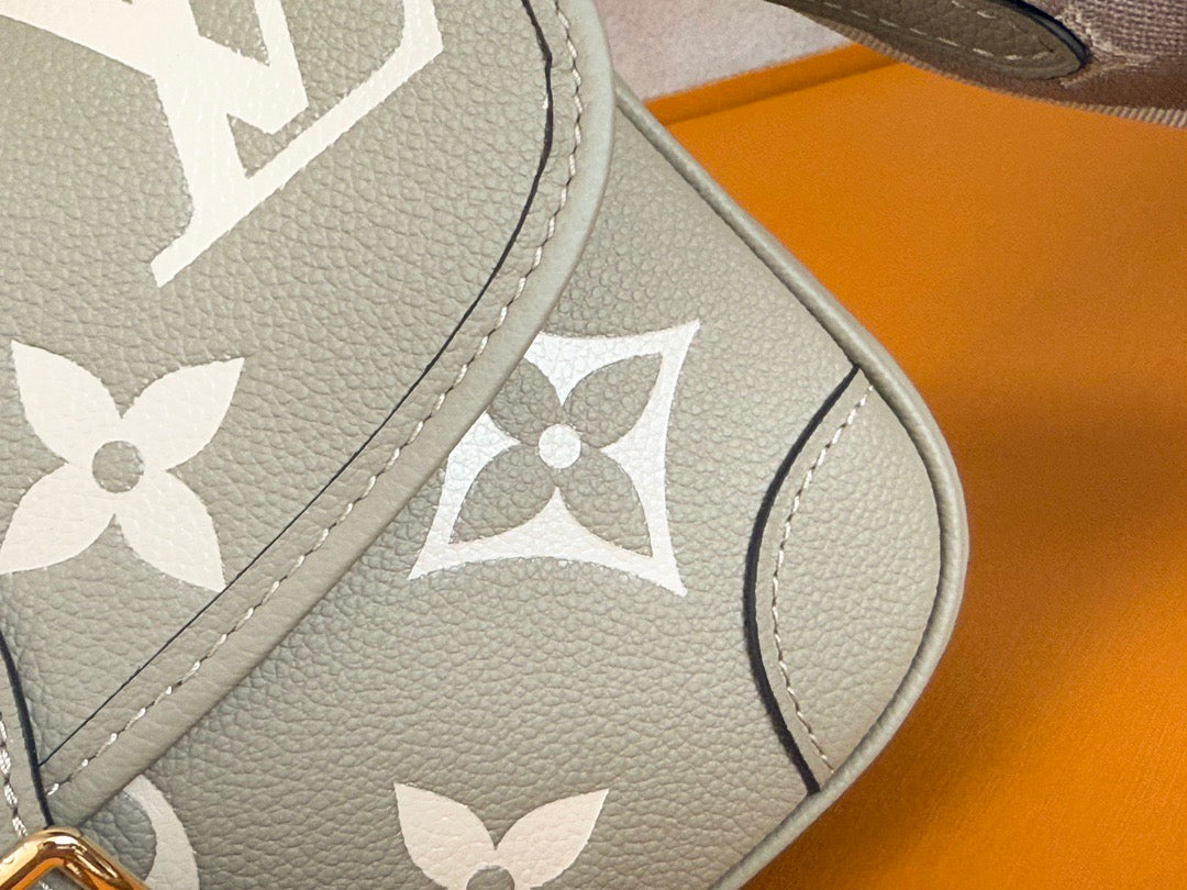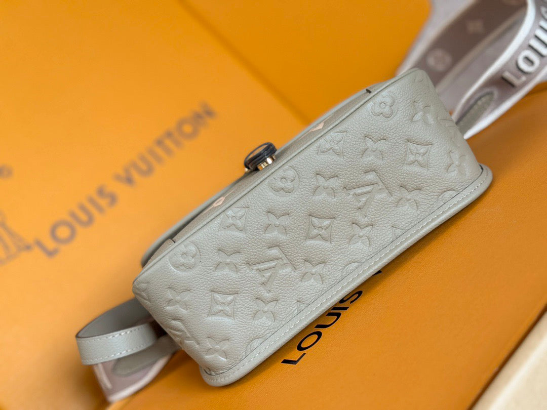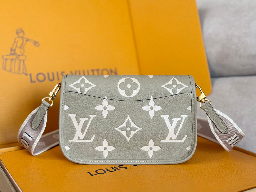 This LV Diane handbag is made of classic Monogram Emreinte embossed leather, with the brand logo woven into the detachable wide jacquard shoulder strap, adding a crossbody option in addition to the detachable leather shoulder strap, which is flexible to fit elegant style or dynamic style, full of 90s retro style. Detailed features 23*16*8.5CM