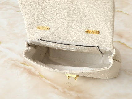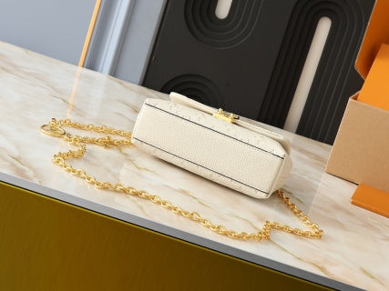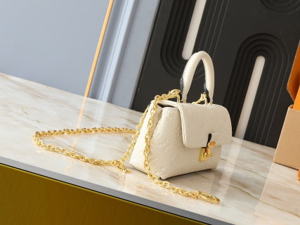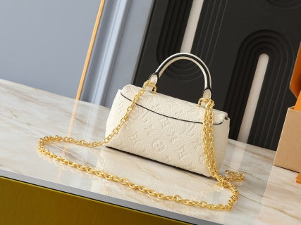 This Nano Madeleine bag is a smaller version of the Madeleine bag crafted from Monogram Empreinte leather. It features the iconic S-lock clasp and a removable chain embellished with the LV Circle logo. It offers ample space for everyday essentials and can be carried by hand, on the shoulder, or across the body. Dimensions: 12.5 x 6 x 21 cm (H x W x L)