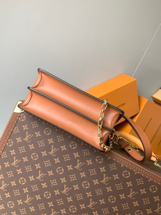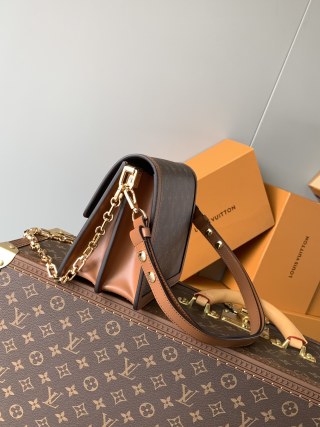 Louis Vuitton's new Dauphine bag, a redesign from the Cruise 2019 collection, was created by Nicolas Ghesquière, artistic director of women's collections. Combining Monogram and Monogram Reverse canvases, and featuring a chain and magnetic closure, it offers a modern take on the brand's heritage, showcasing Louis Vuitton's chic flair.