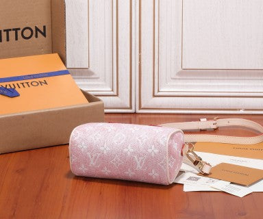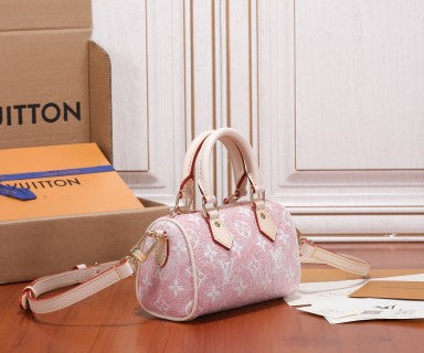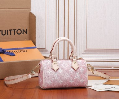Premium all-steel ✨‼ ️Original development, all-steel hardware 👏👏 The Nano Speedy handbag is a refined rendition of Louis Vuitton's classic Speedy handbag. This time, it's crafted from Monogram jacquard denim, featuring a jacquard knit with a Monogram pattern and a sand-washed effect. The handles and long shoulder strap allow for shoulder or crossbody carry, stylishly accommodating small essentials. Features Monogram jacquard denim, cowhide leather trim, Monogram jacquard denim lining, metal hardware, a zipper closure, and a detachable, adjustable shoulder strap! Dimensions: 16 x 10 x 7.5 cm